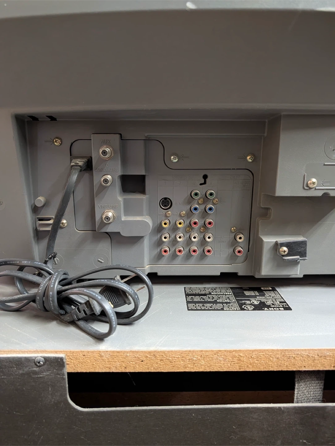 Sony Trinitron color TV model KV-32FS210. Manufactured March 2004. Includes various audio-visual inputs. Great for retro gaming or analog broadcasts!