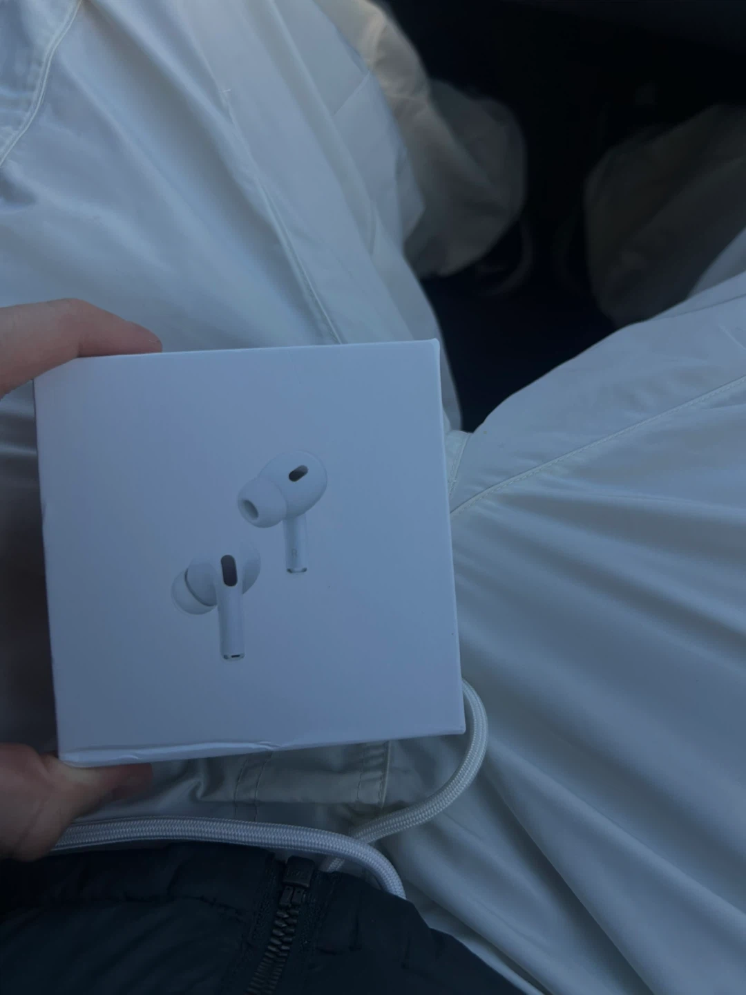 Apple AirPods Pro (2nd generation) with MagSafe Charging Case. Includes AirPods Pro, charging case, and USB-C to Lightning Cable. Designed by Apple in California.
