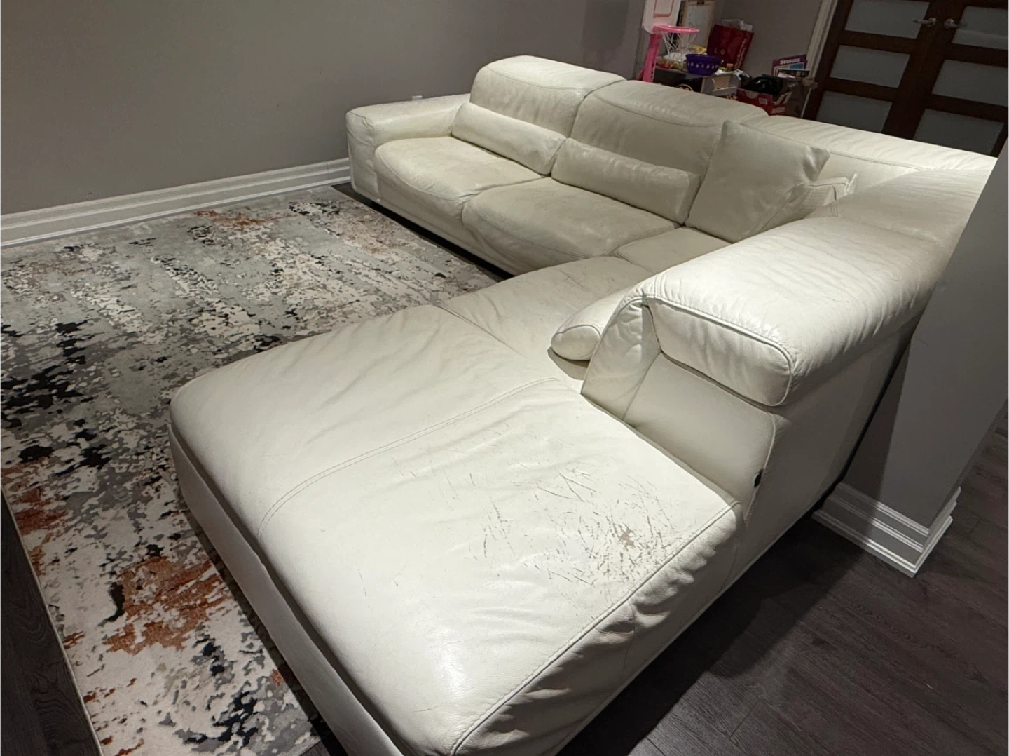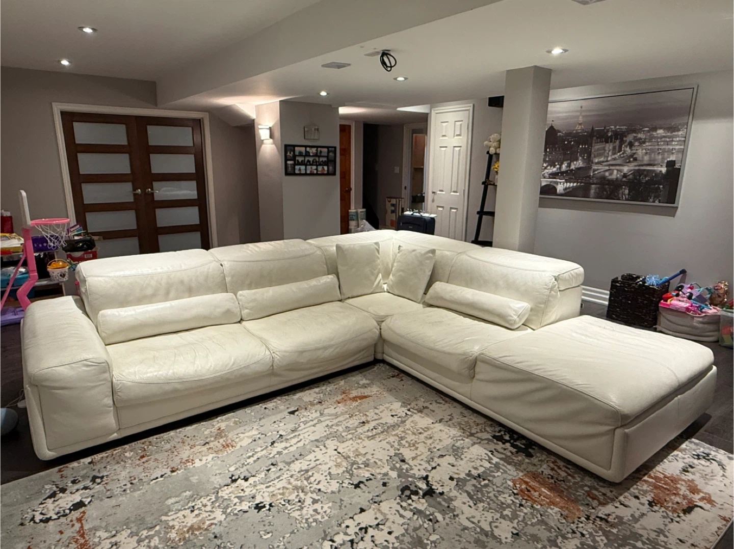 Large White Leather Sectional