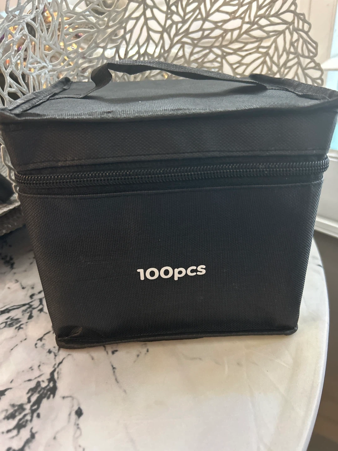 This set includes 100 coloured twin markers in a black carrying case. Each marker features a fine tip and a broad tip for versatile use. The case is labelled '100pcs' and the markers are organized by colour and number. Asking $40 obo. They are brand new in the case, never used.