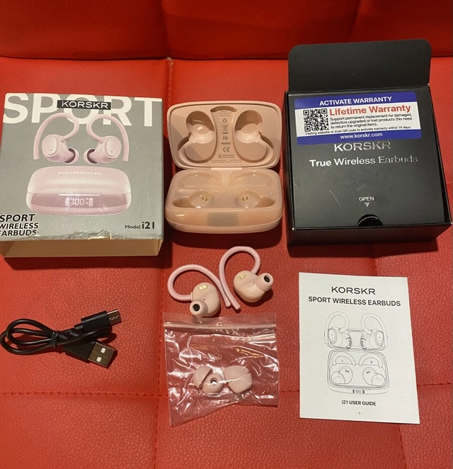 These earbuds can be used individually (mono mode) or simultaneously (dual mode). The wireless earbuds with dual digital power display tells the remaining battery in percentage. Unshakable and comfortable fit ear hooks and ergonomic shape make the wireless earbuds stay firmly in position with no pain while sports. Built-in a professional 10mm speaker unit, the wireless earbuds perform the design of the composite vibration membrane to avoid sound distortion.