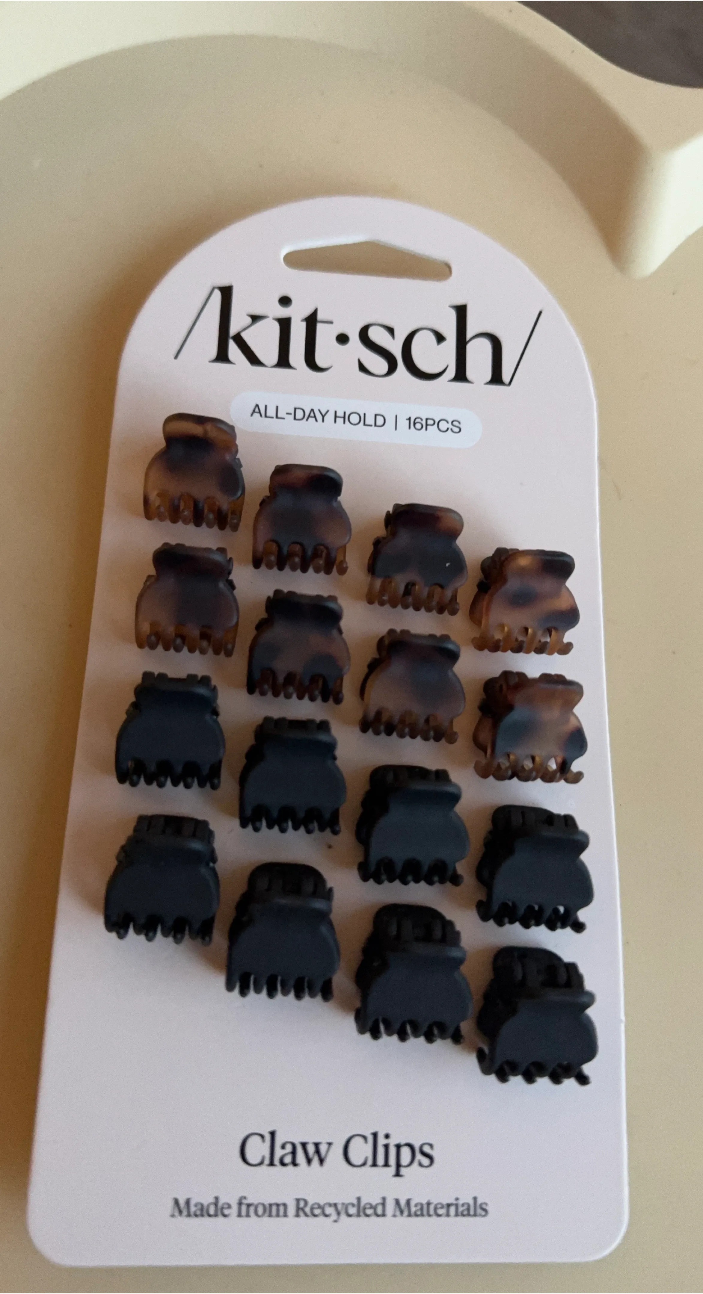 Selling a set of Kitsch claw clips! The package includes 16 pieces, perfect for all-day hold. They're made from recycled materials, so you can feel good about your purchase.