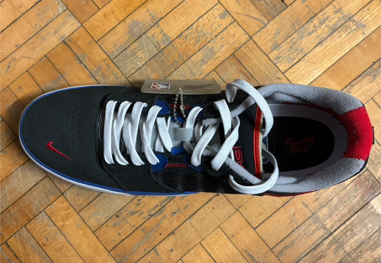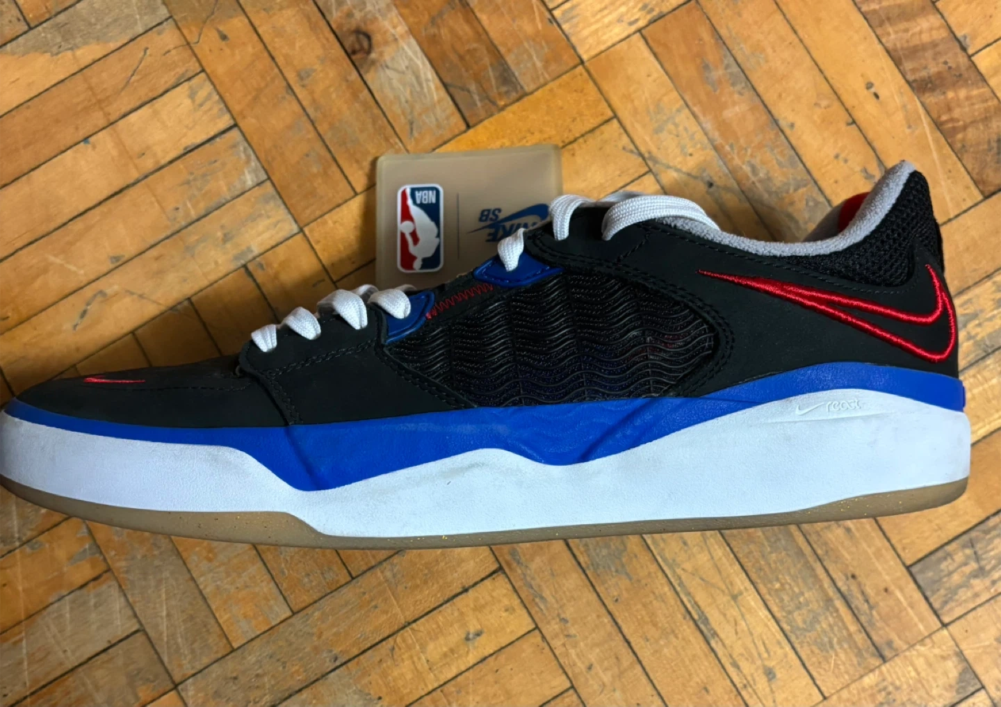NBA x Nike Ishod Wair Premium SB '75th Anniversary'. They're built for skateboarding and include a durable rubber sole. The NBA branding is present on the shoe and tag.
