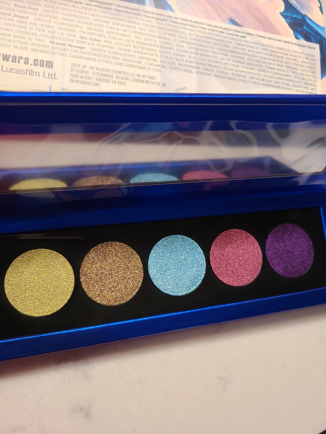 Pat McGrath Labs Divine Droid Eye Shadow Palette from the Star Wars collection. This palette features five colourful eyeshadow shades.