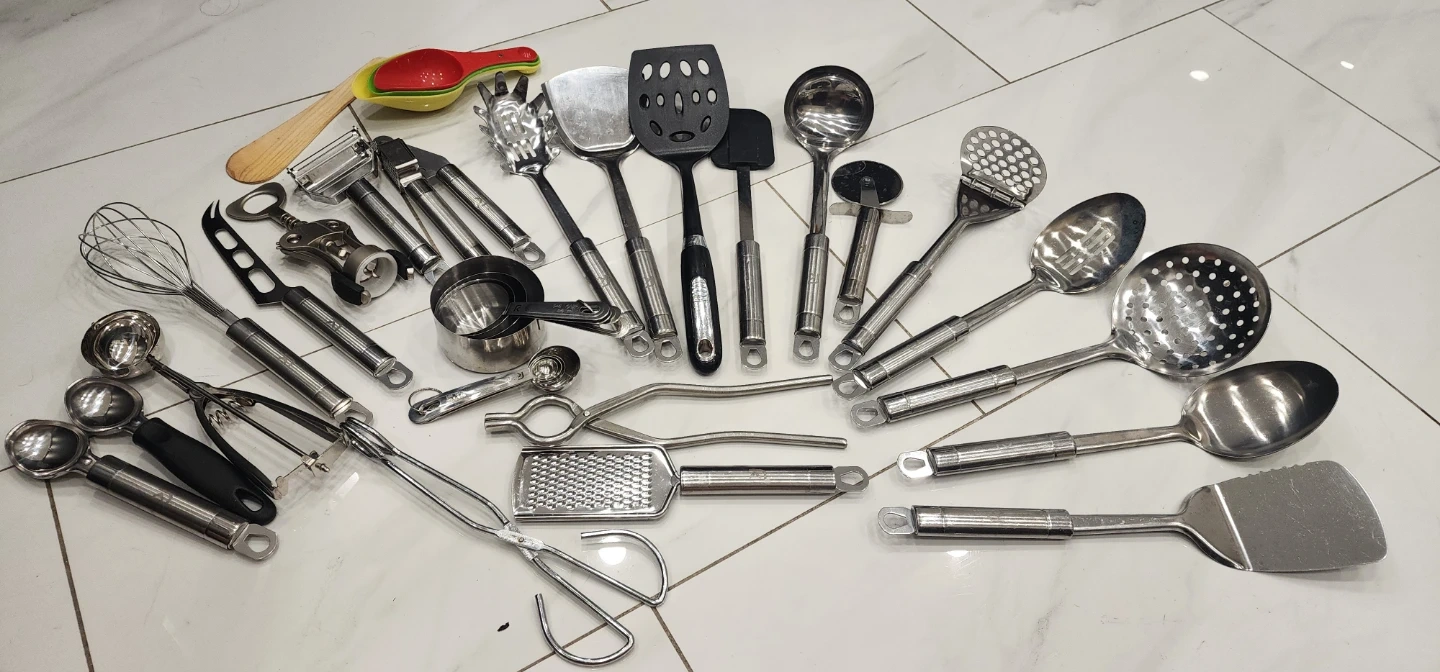 Large bundle of kitchen utensils in good condition.