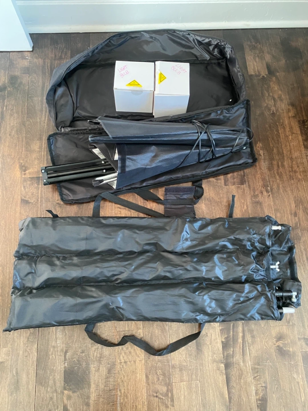 It all packs neatly into a carrying bag. Great for photography and videography setups!