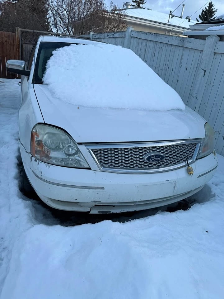 Selling a 2004 Ford Five Hundred, a spacious, comfortable, and reliable sedan, ideal as a budget daily driver or a second vehicle. Located in Edmonton, Alberta. Overall mechanical condition is good. Battery is dead due to recent cold weather. Small power steering fluid leak. Can be driven once a new battery is installed and power steering fluid is topped up. Mileage is around 280,000 km (exact mileage unknown as the battery is currently dead). Brakes serviced less than 1 year ago. Oil changed less than 1 year ago. Snow tires included. Vehicle has been sitting for about 8 months. This is a solid, roomy, and comfortable car, known for its durability. No major issues. Sold as-is, reflected in the price. Price is $1500 OBO.