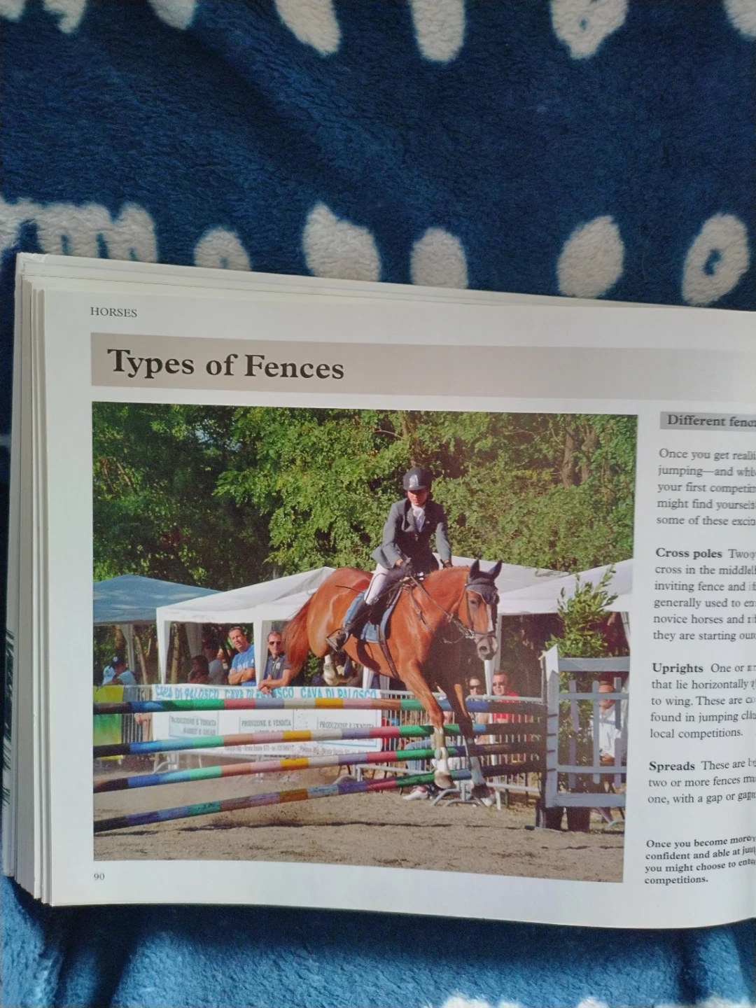 This book covers various aspects of horse care and riding. It includes sections on different types of fences and how to navigate them. A great resource for anyone interested in equestrian activities!