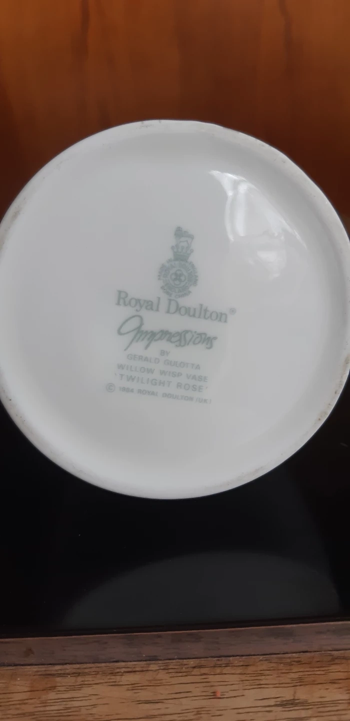 One is a Ming Rose vase by Coalport and the other is a Willow Wisp Twilight Rose vase by Royal Doulton.