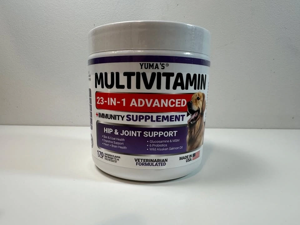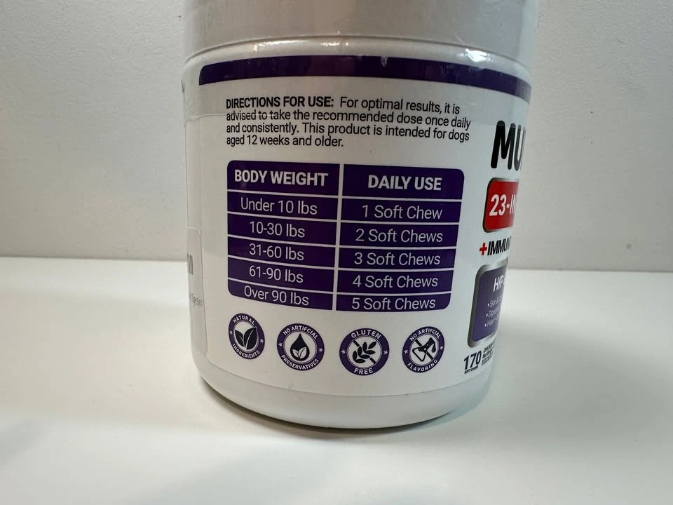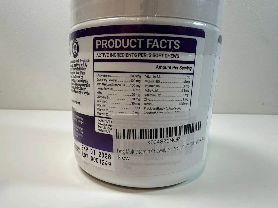 Brand new, unopened dog multivitamin. Good for hip/joint support, immune system, skin, and digestion. Purchased at an auction of unopened Amazon shipments that couldn’t be delivered. I do not have a dog, so I'm selling it.