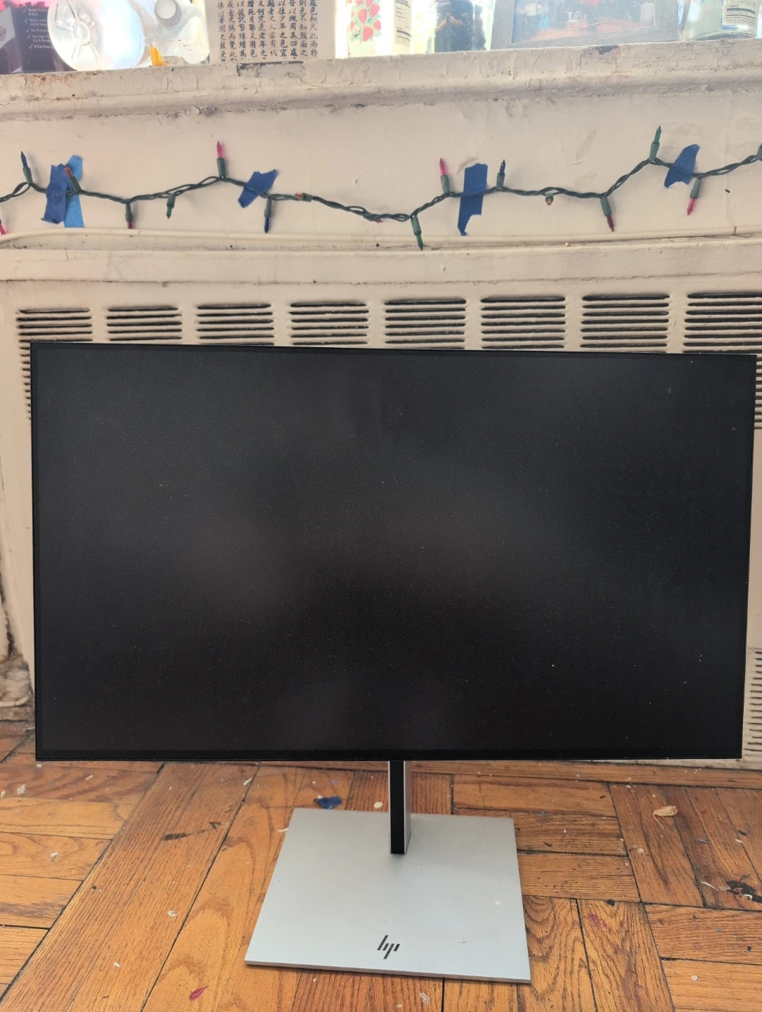 This is an HP monitor with a sleek design. It features a silver stand and a black screen. The monitor offers a clear display for everyday tasks.