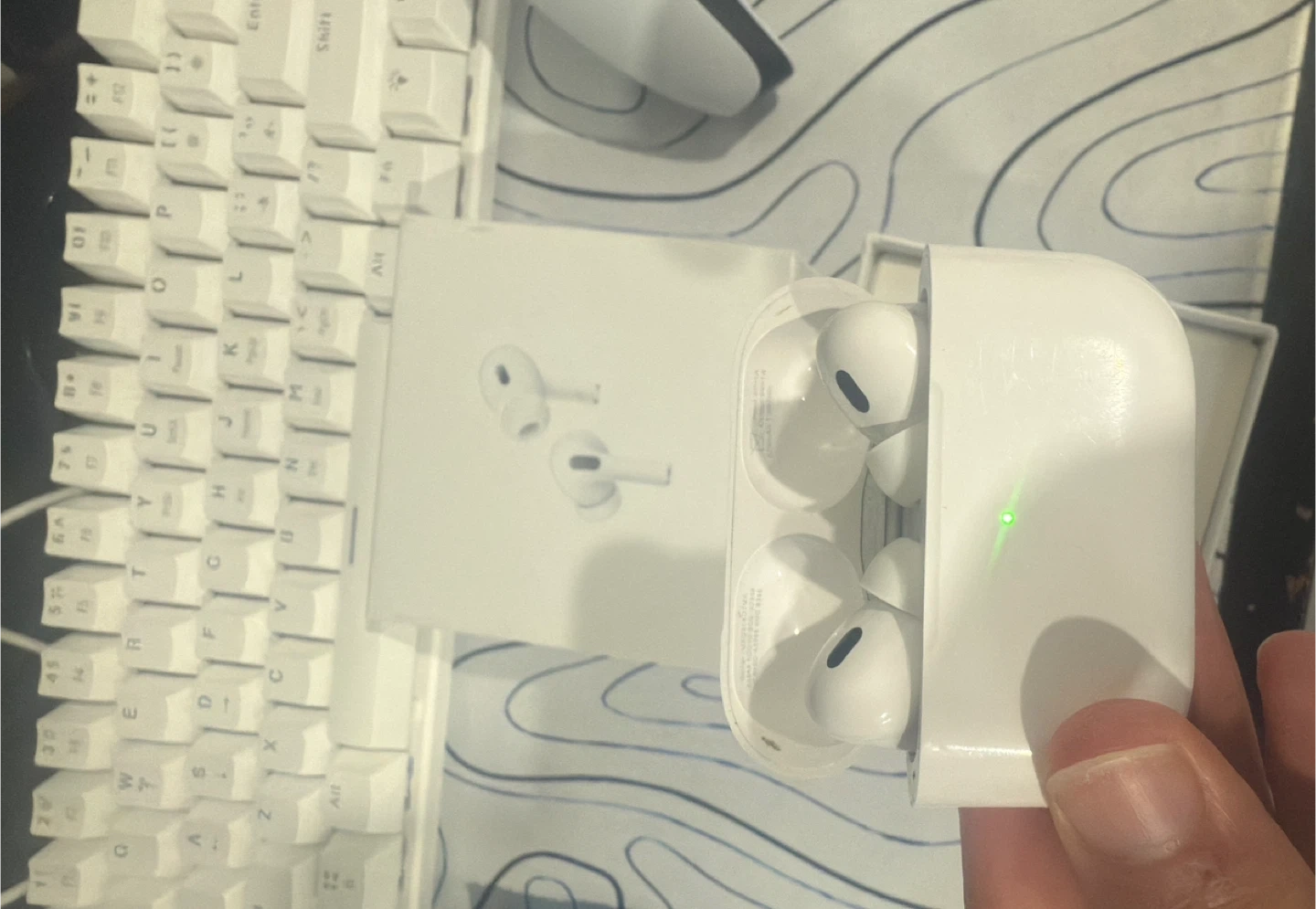 Apple AirPods Pro (2nd generation). Includes original box and charging case. Noise cancellation and transparency mode.