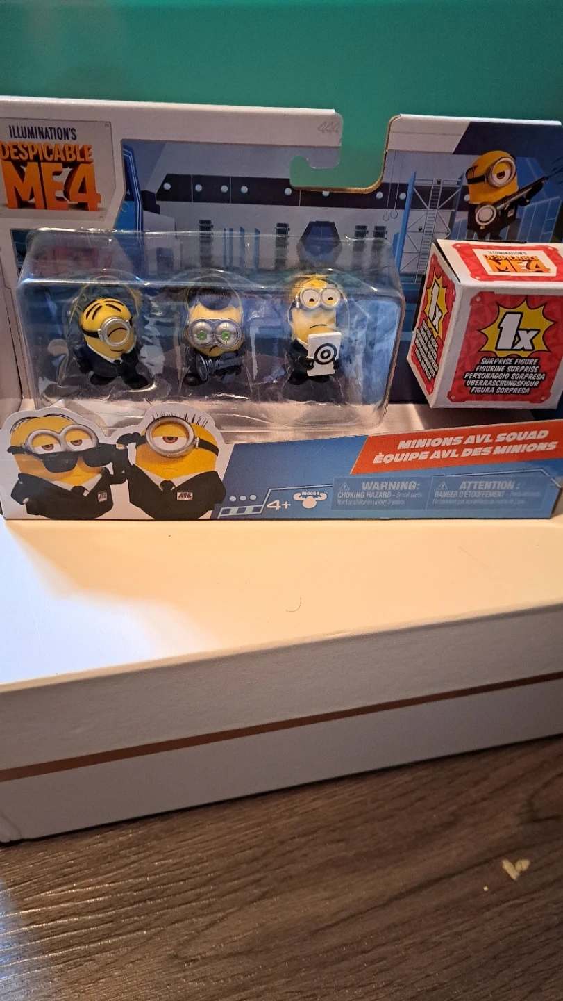 Includes three Minions AVL Squad figures from Despicable Me 4. Collectible figures come in a package with a surprise figure cube. Recommended for ages 4 and up.