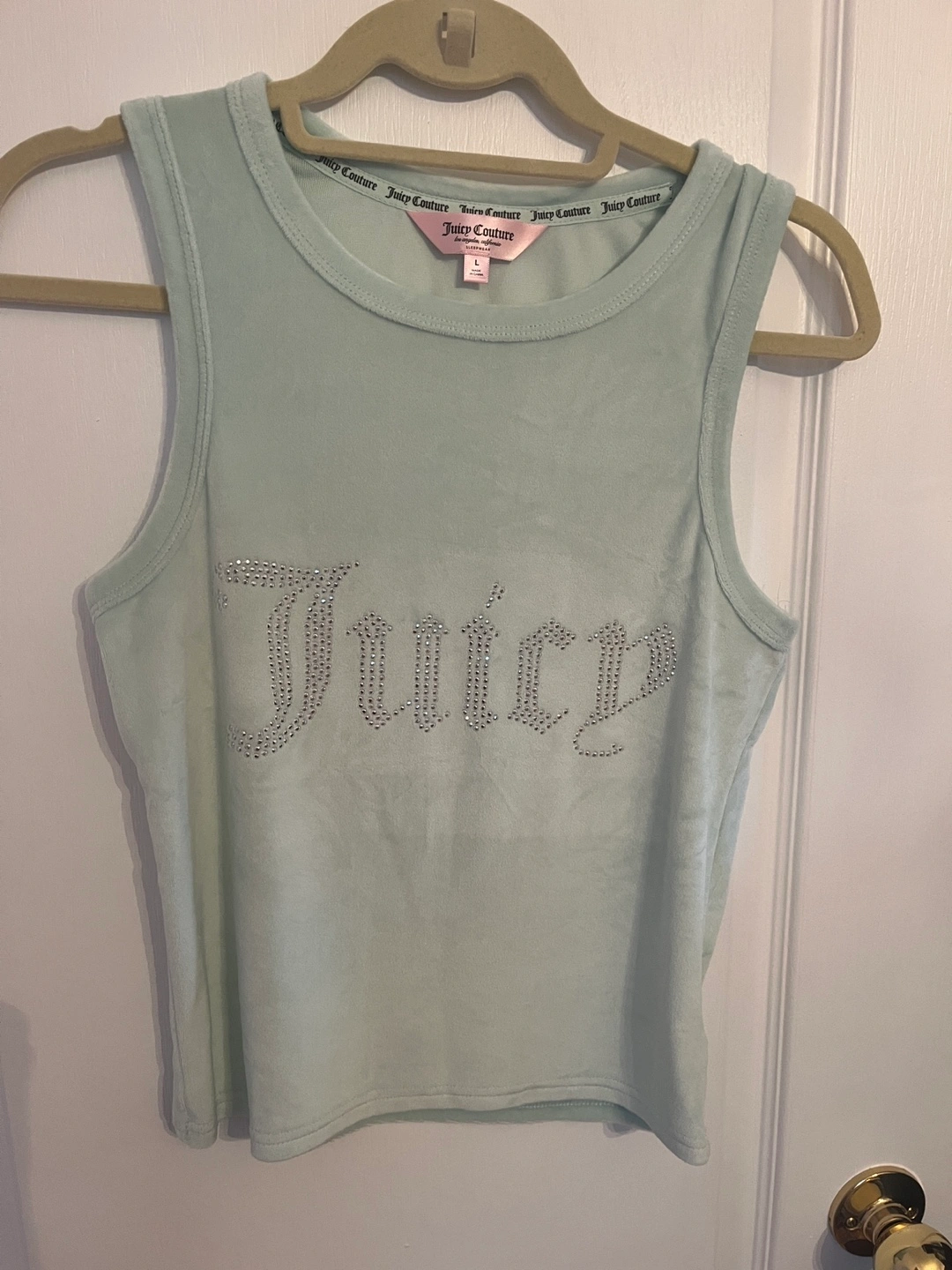 Mint green velour tank top and matching pants set. Size L. Brand new without tags!