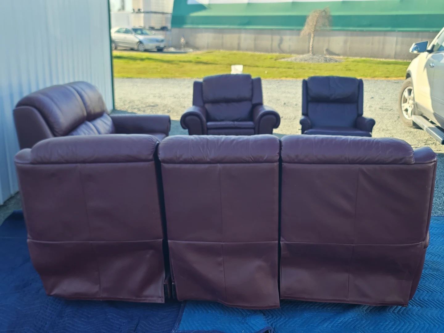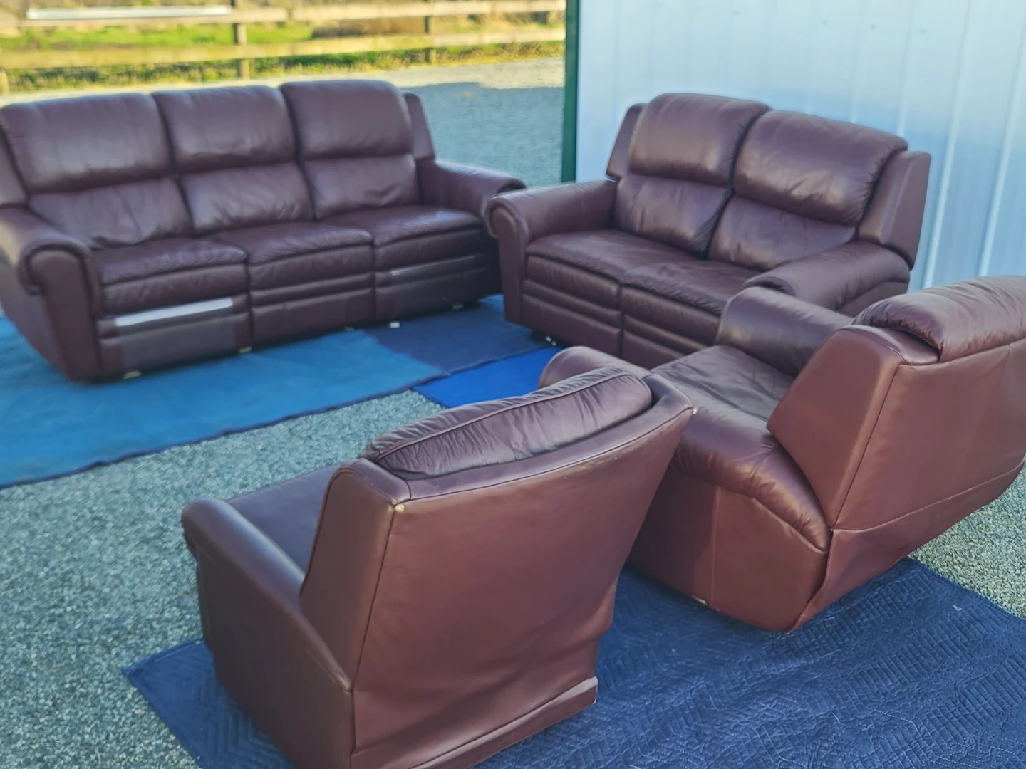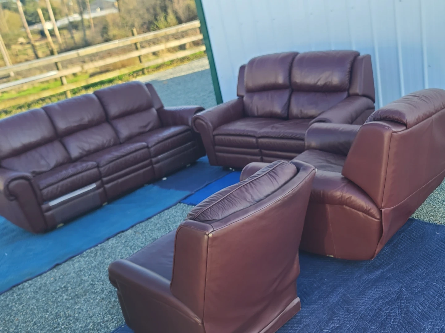 Comfortable brown leather living room set including sofa, loveseat, and chairs. All pieces are in good condition with normal wear. Great for a family room, basement, or rental. Clean, sturdy, and ready for pickup. Delivery can be arranged. Viewing and pickup by appointment.