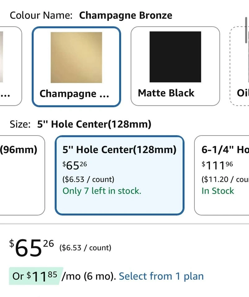 New in box set of 10 modern cabinet pulls in a champagne bronze finish. The color appears as a warm gold tone and looks great on white, black, or wood cabinets. Quantity: 10 pulls. Finish: Champagne Bronze (warm gold appearance). Hole Centers: 5 inches (128mm). Material: Metal. Includes mounting screws.