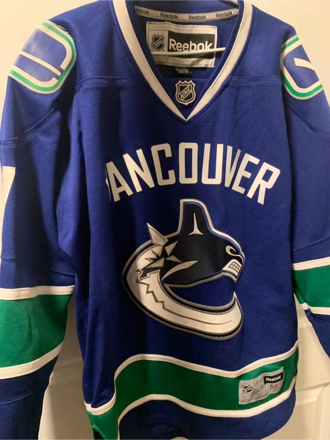 Selling a Reebok Vancouver Canucks jersey with Booth and number 7 on the back. This jersey is a men's size medium and is in used condition. It's a fantastic piece for any Canucks fan looking to show their support! This hockey jersey would be perfect for wearing to games or displaying as a collector's item.