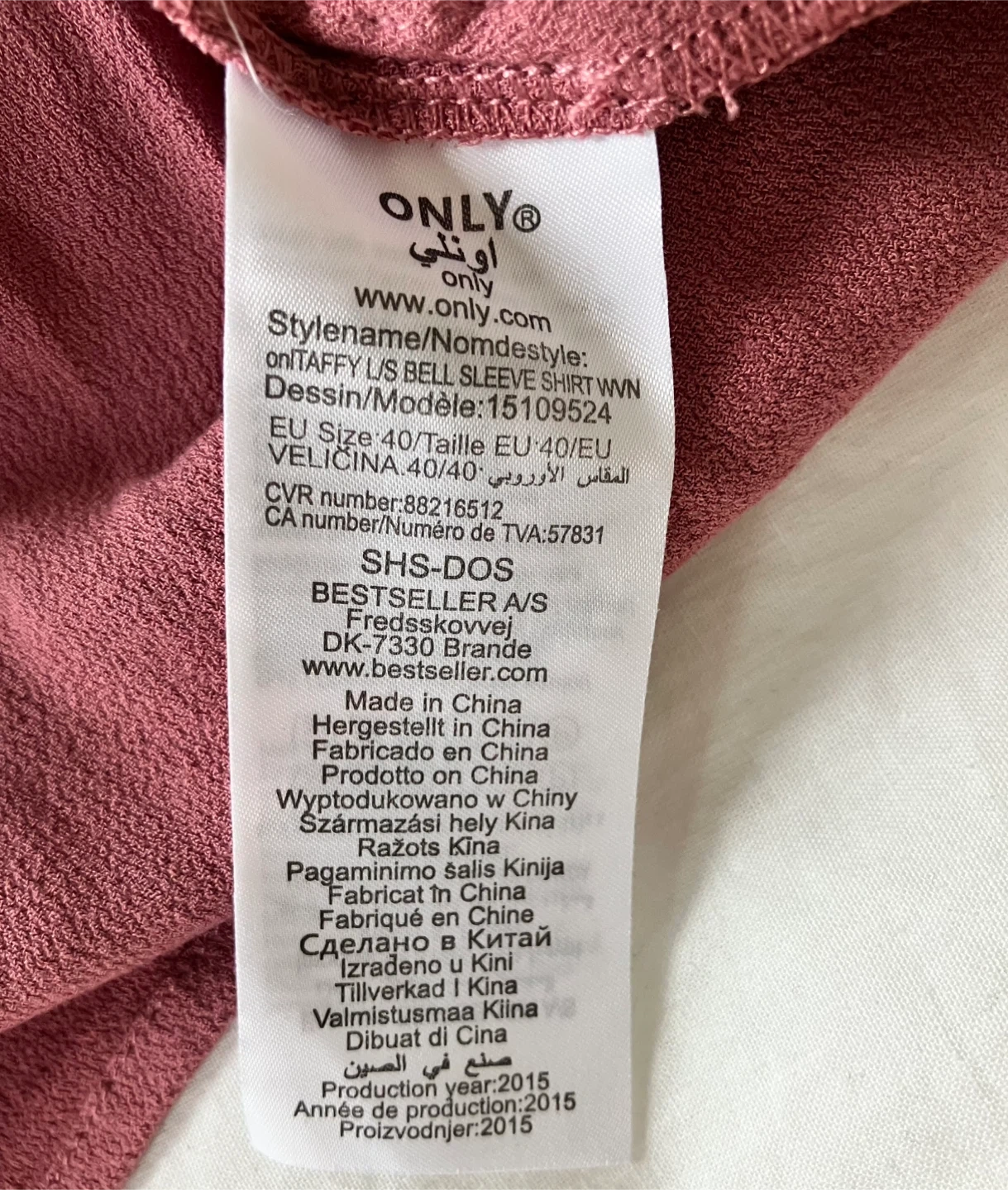 ONLY Pink Bell Sleeve Shirt Women's EU 40
