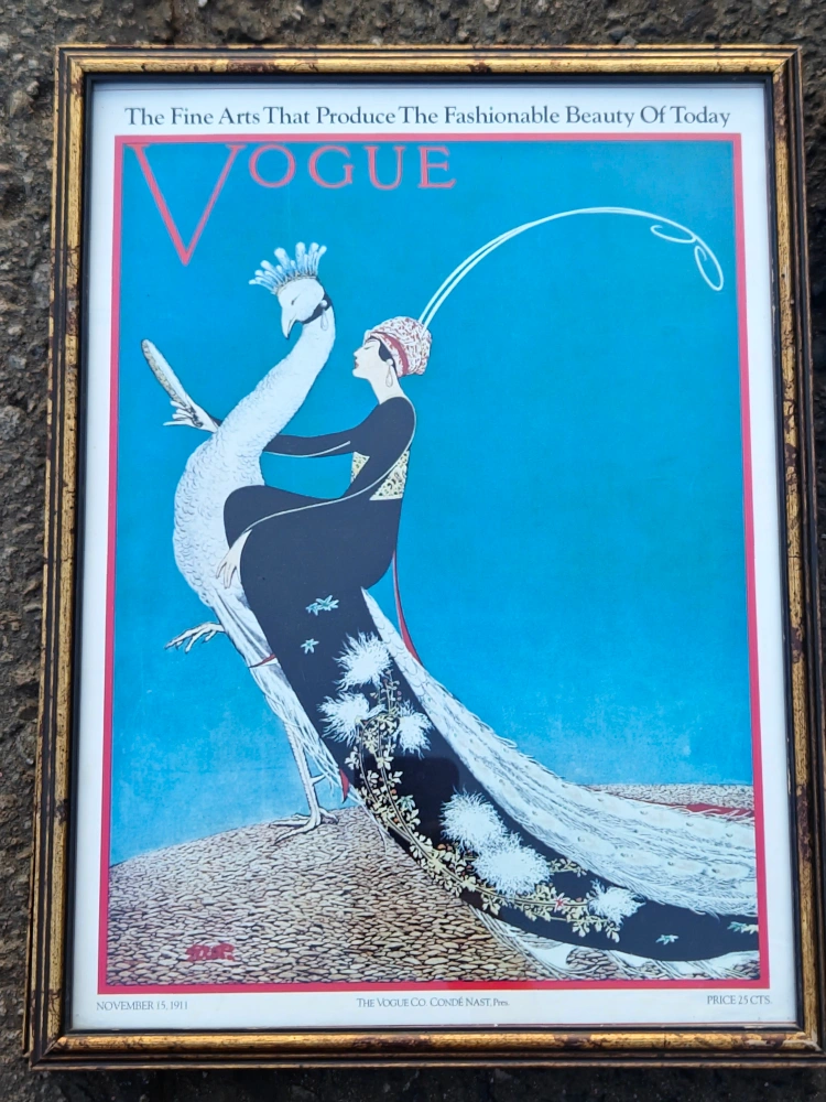 Selling a framed print of the Vogue Magazine cover from November 15, 1911. It's a beautiful piece showcasing the fine arts that produce the fashionable beauty of today. The frame is included!