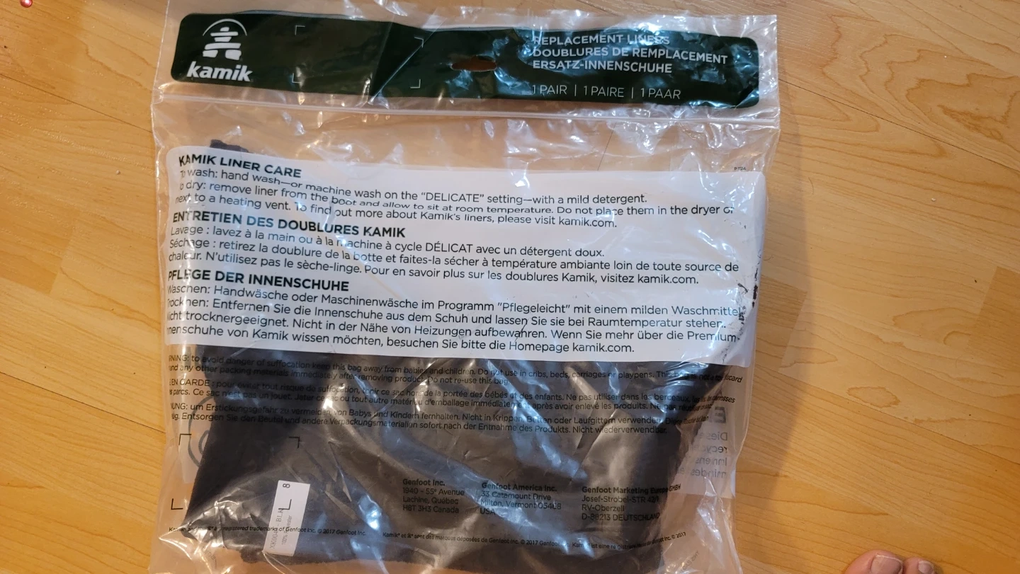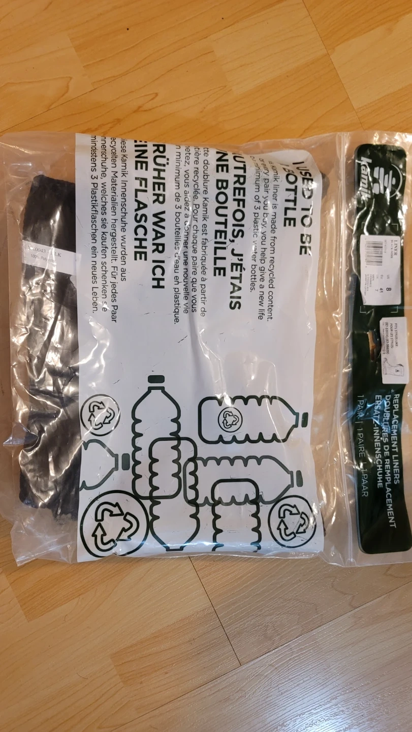 Selling a pair of Kamik replacement liners in size 8. They're made from recycled content, so you're helping give a new life to plastic water bottles! These liners are designed to be hand washed or machine washed on the delicate setting with a mild detergent. Just remember to remove the liner from the boot and allow it to sit at room temperature to dry