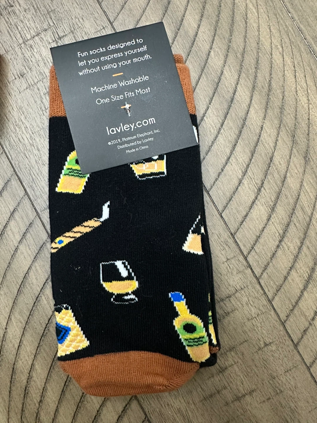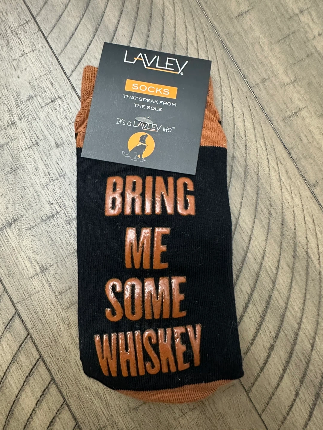These Lavley socks say 'Bring Me Some Whiskey' with a fun whiskey-themed pattern. They're machine washable and one size fits most. A great way to express yourself!
