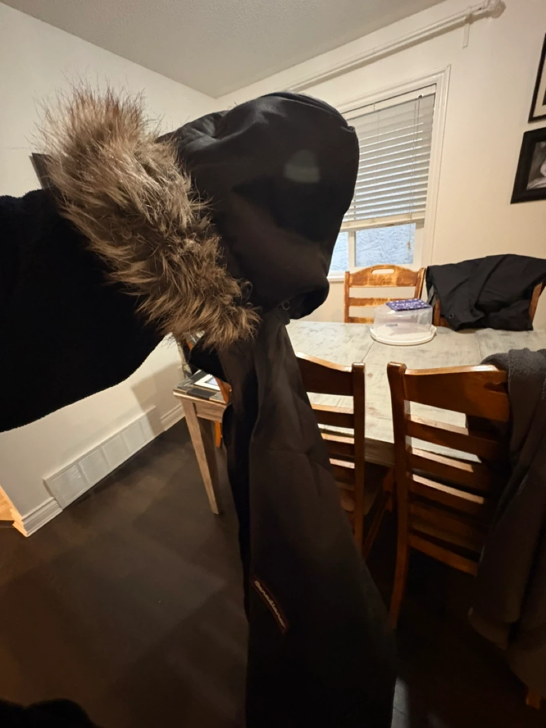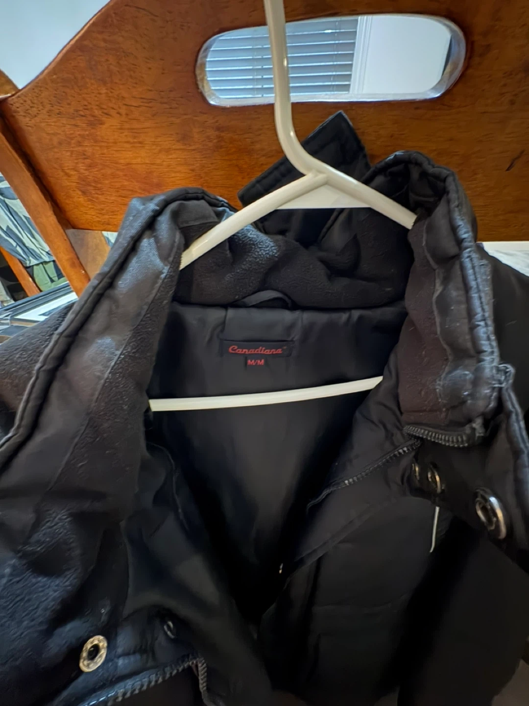 Selling a Canadiana winter jacket in black. It's a size M/M. Perfect for the cold weather!