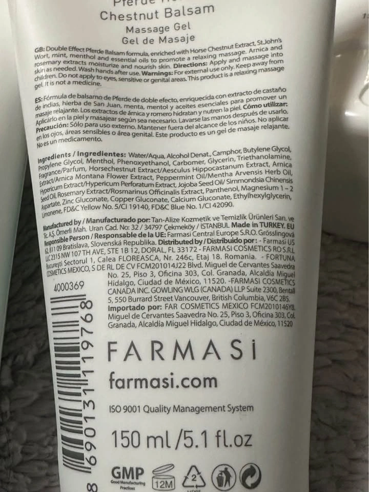 Pferde Balm contains St. John's Wort, Arnica, Mint, Menthol, and Rosemary.
