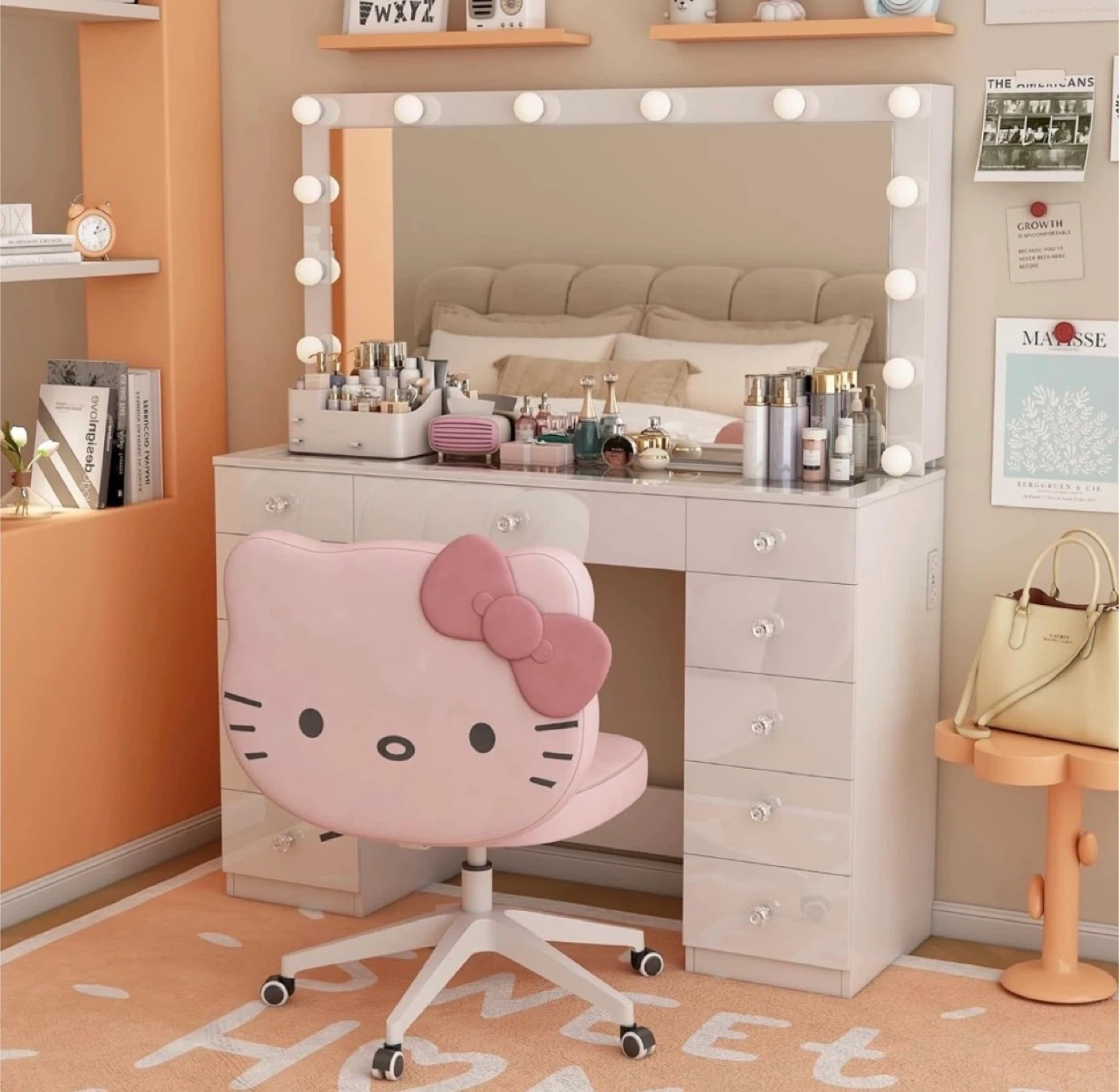 This vanity is great for a bedroom, apartment, or beauty setup. The lights around the mirror provide great lighting for makeup and skincare routines.