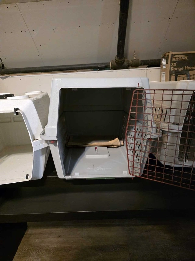 I have 3 pet cages. 2 of them fits a small dog or a cat, and the middle one fits a small or medium size dog, or maybe 2 small dogs. I cleaned them but they need a better cleaning. $20 each or 3 for $50 obo.
