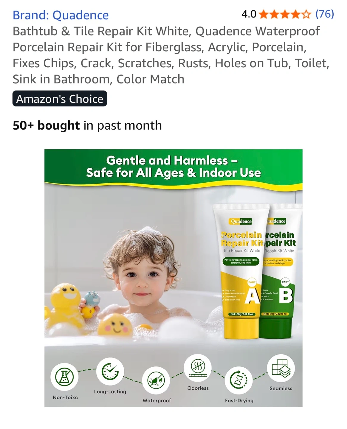 I'm selling a brand new box Quadence Tub & Tile Porcelain Repair Kit. It's great for fixing chips, cracks, scratches, rust, and holes on tubs, toilets, and sinks.