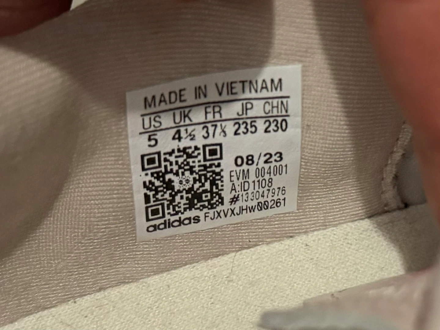 Light pink Adidas Ozweego sneakers with pink and white accents. These shoes feature a comfortable design and durable construction. Made in Vietnam.