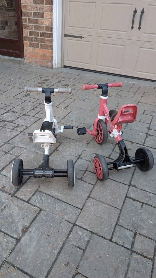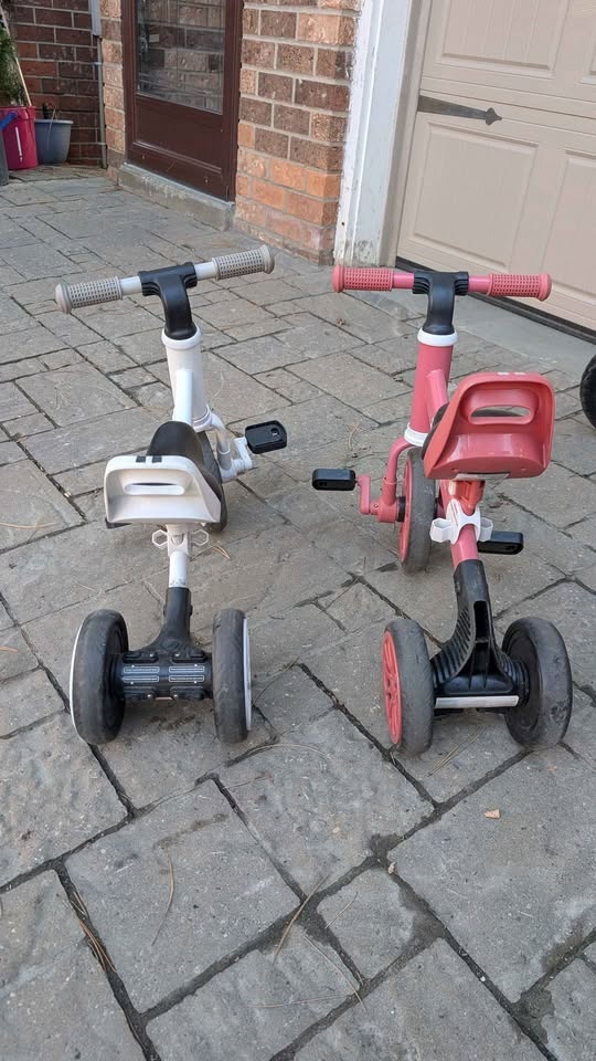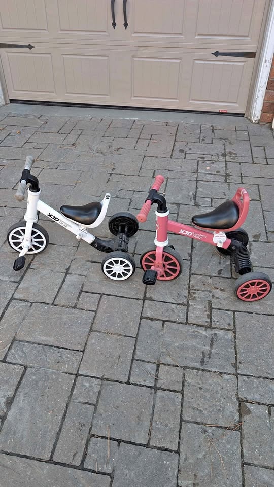 Versatile XJD Children Trikes available! Two bikes, white and pink. In excellent condition-- like new. No rust. Stored inside. $25 each. These are 2-in-1 convertible bikes, use as balance bike or pedal trike. Back wheels adjust outwards for more support or push inwards for balancing. Option to petal or use feet. Pedals attached and are removable and can be stored under seat. Great for 1-3 year olds. Pickup near Greenwood and Danforth area m4j5a4. Lots of other items available! Check out my other ads.