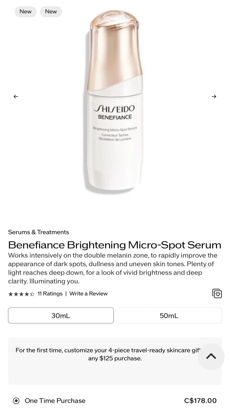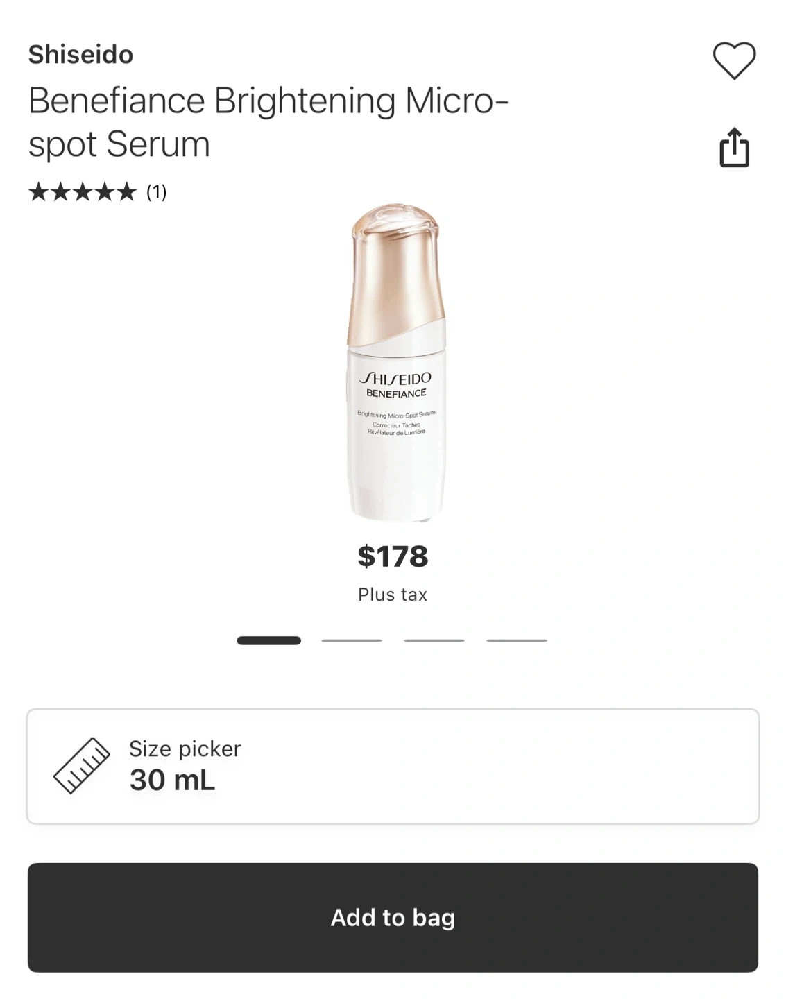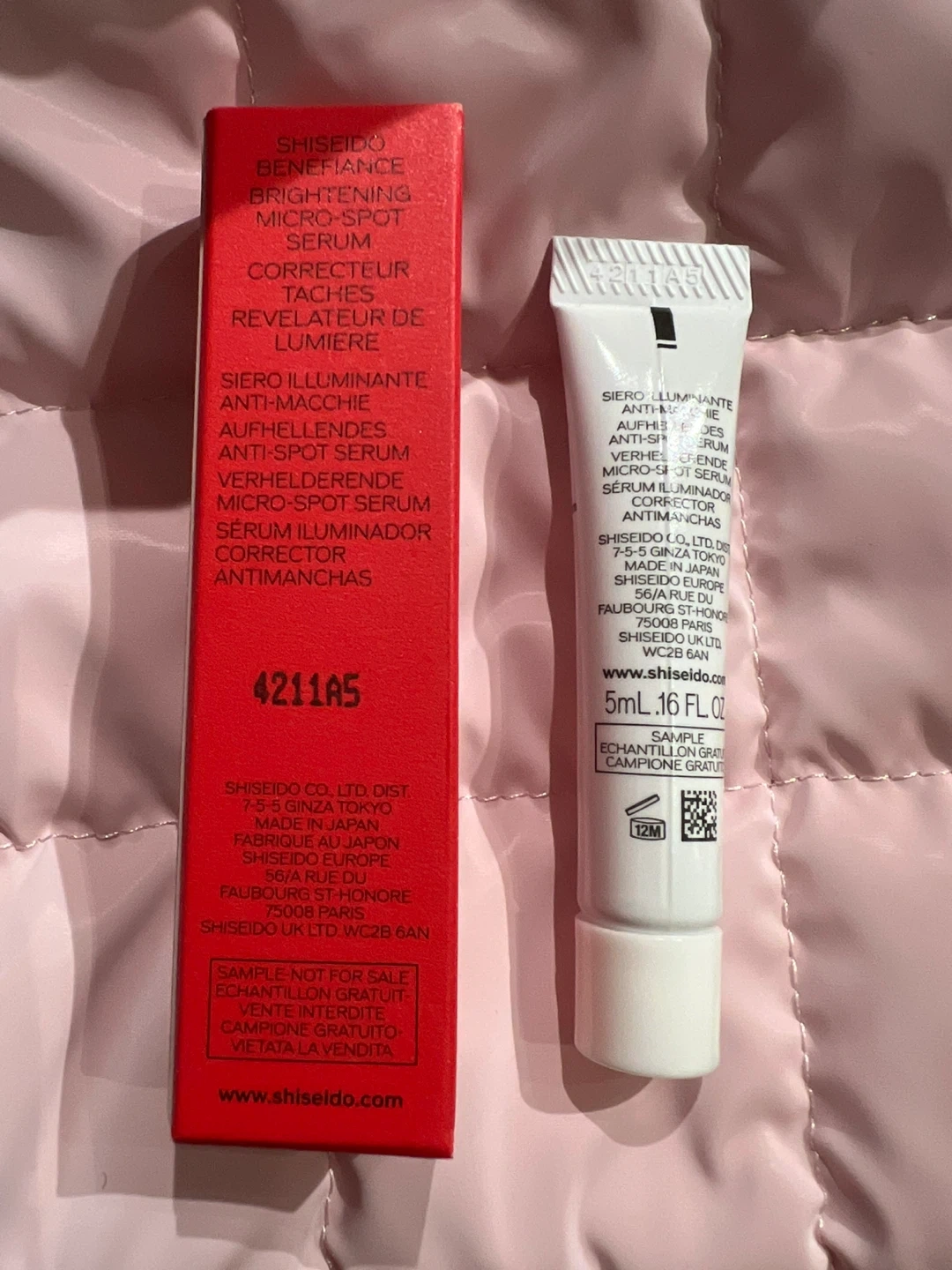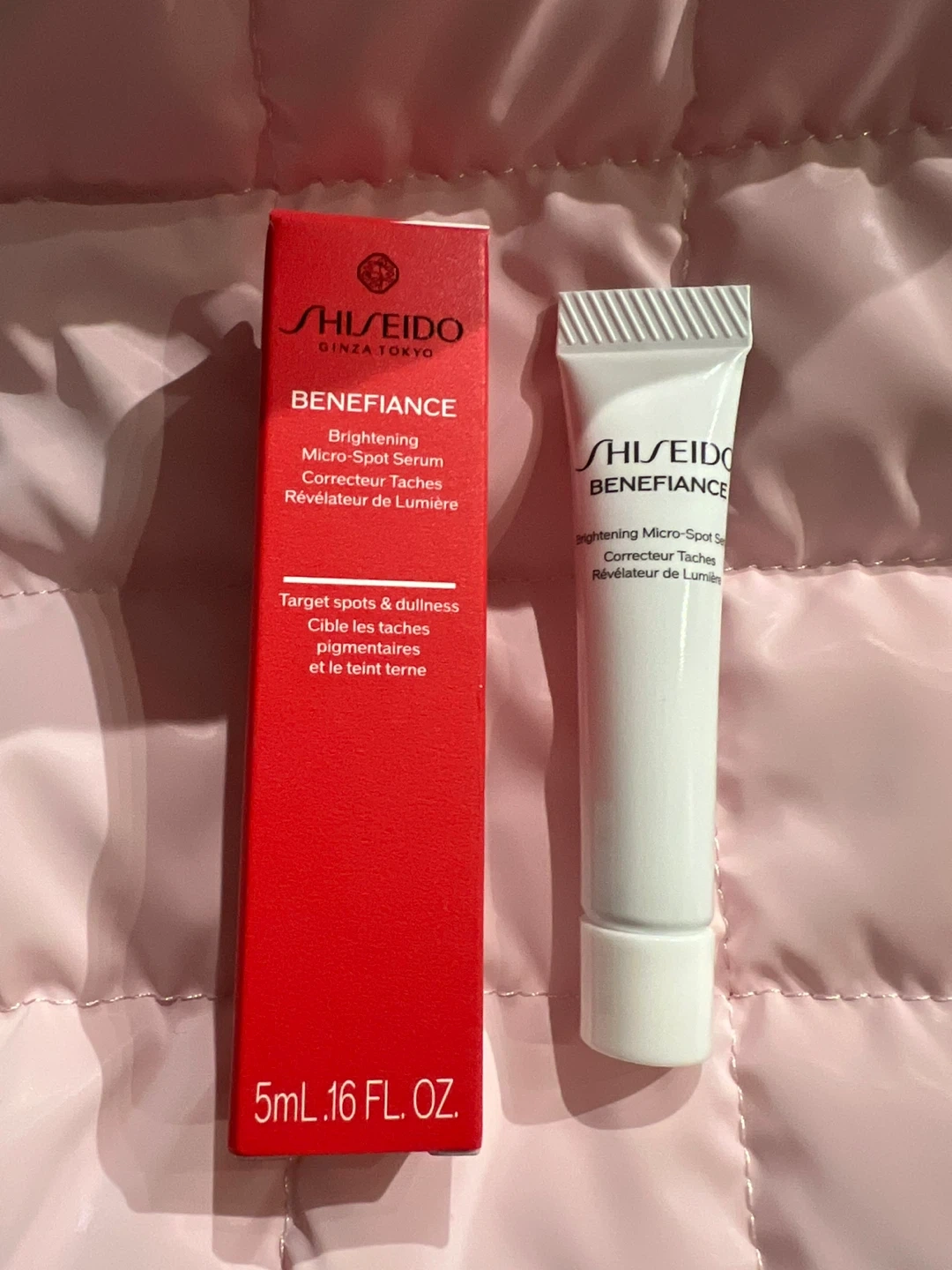 Shiseido Benefiance Brightening Micro-Spot Serum sample. Corrects dark spots and dullness. 5mL size. Perfect for trying out this popular serum!