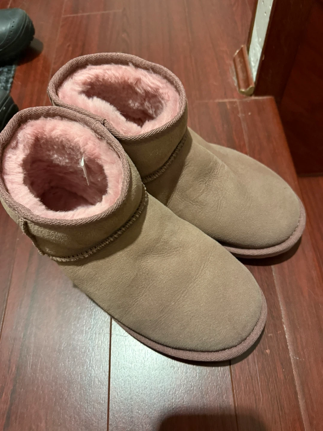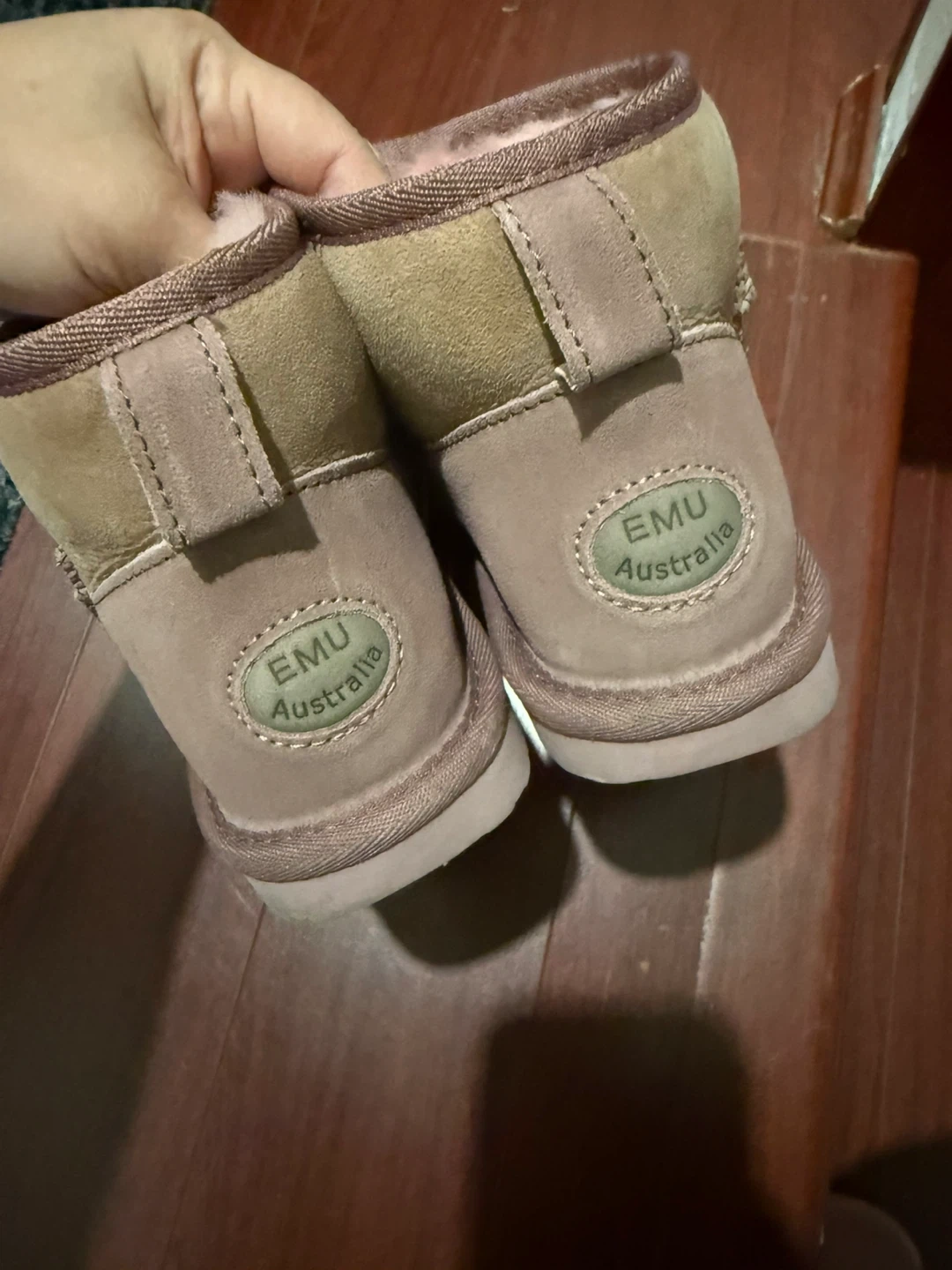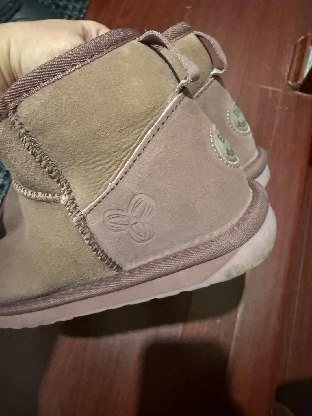 Cozy Emu Australia sheepskin boots in tan. These short boots feature a plush pink lining and are water-resistant. Perfect for keeping your feet warm and dry!