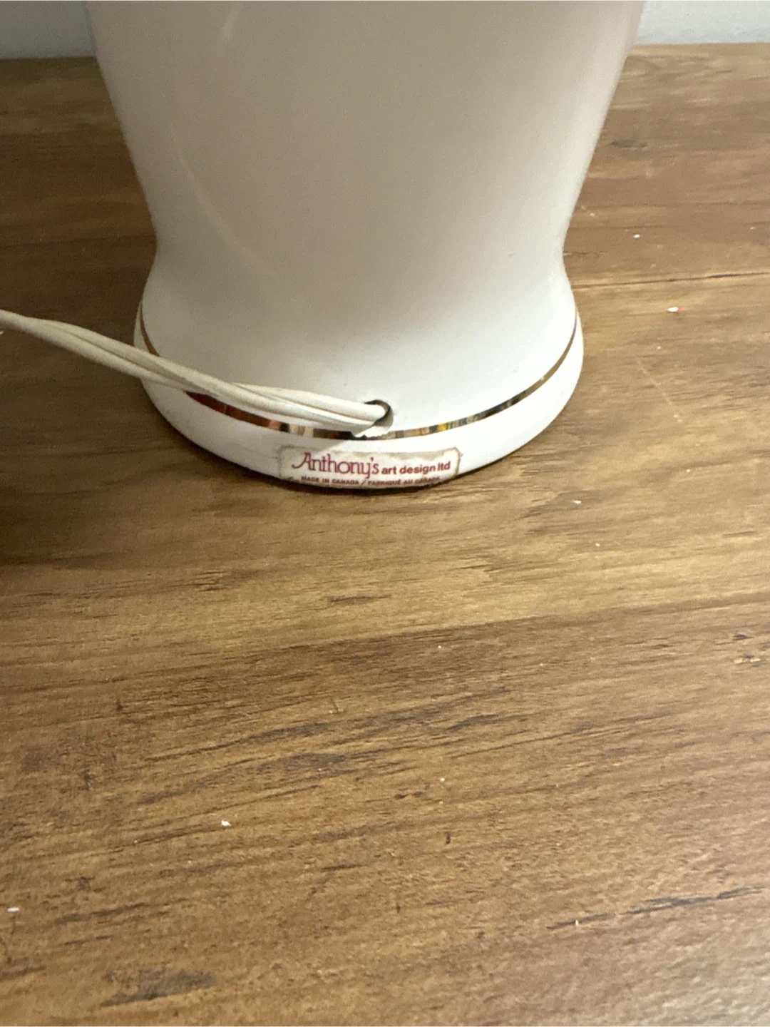 This charming table lamp features a white ceramic base decorated with a delicate floral pattern. It comes with a pleated fabric lampshade that adds a touch of elegance. The lamp is in good working condition and would suit a bedside table or living room.