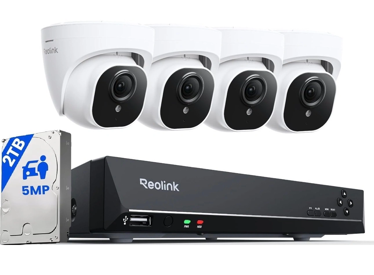 Reolink 8CH 5MP PoE Home Security Camera System, 4pcs Wired 5MP Outdoor PoE IP Cameras Outdoor with Person Vehicle Detection, 4K 8CH NVR with 2TB HDD for 24-7 Recording | RLK8-520D4-5MP