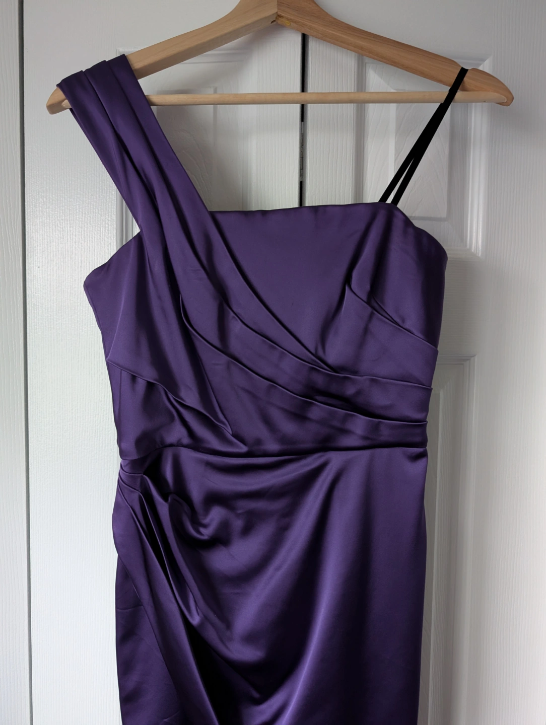 Jill Stuart one-shoulder cocktail dress in a beautiful deep purple.