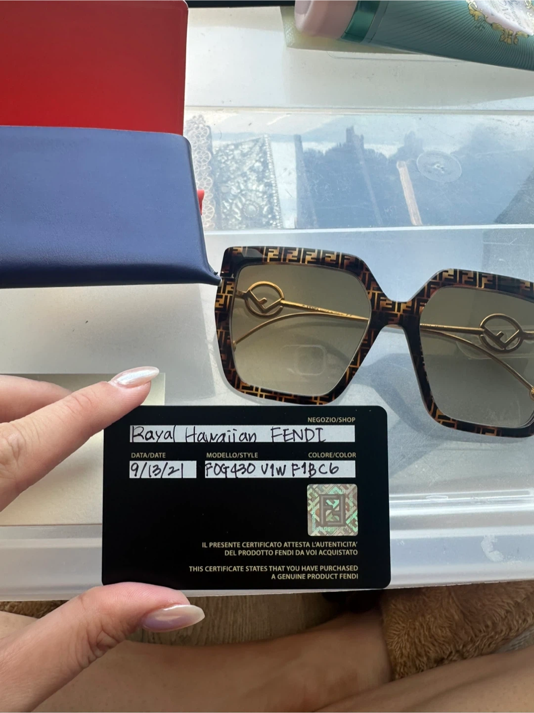 Selling a pair of Fendi sunglasses! They come with the original box and authenticity card. These sunglasses are in great condition , no scratches.