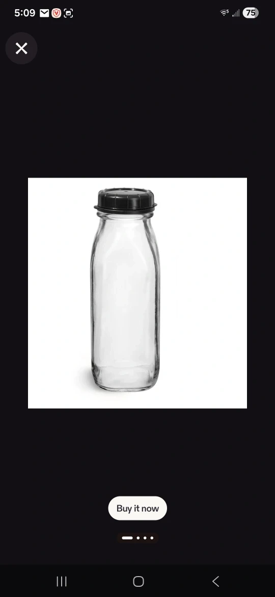 This reusable glass bottle is perfect for milk, juice, or other beverages. It comes with a secure black screw-on lid. The clear glass construction allows for easy content visibility.
