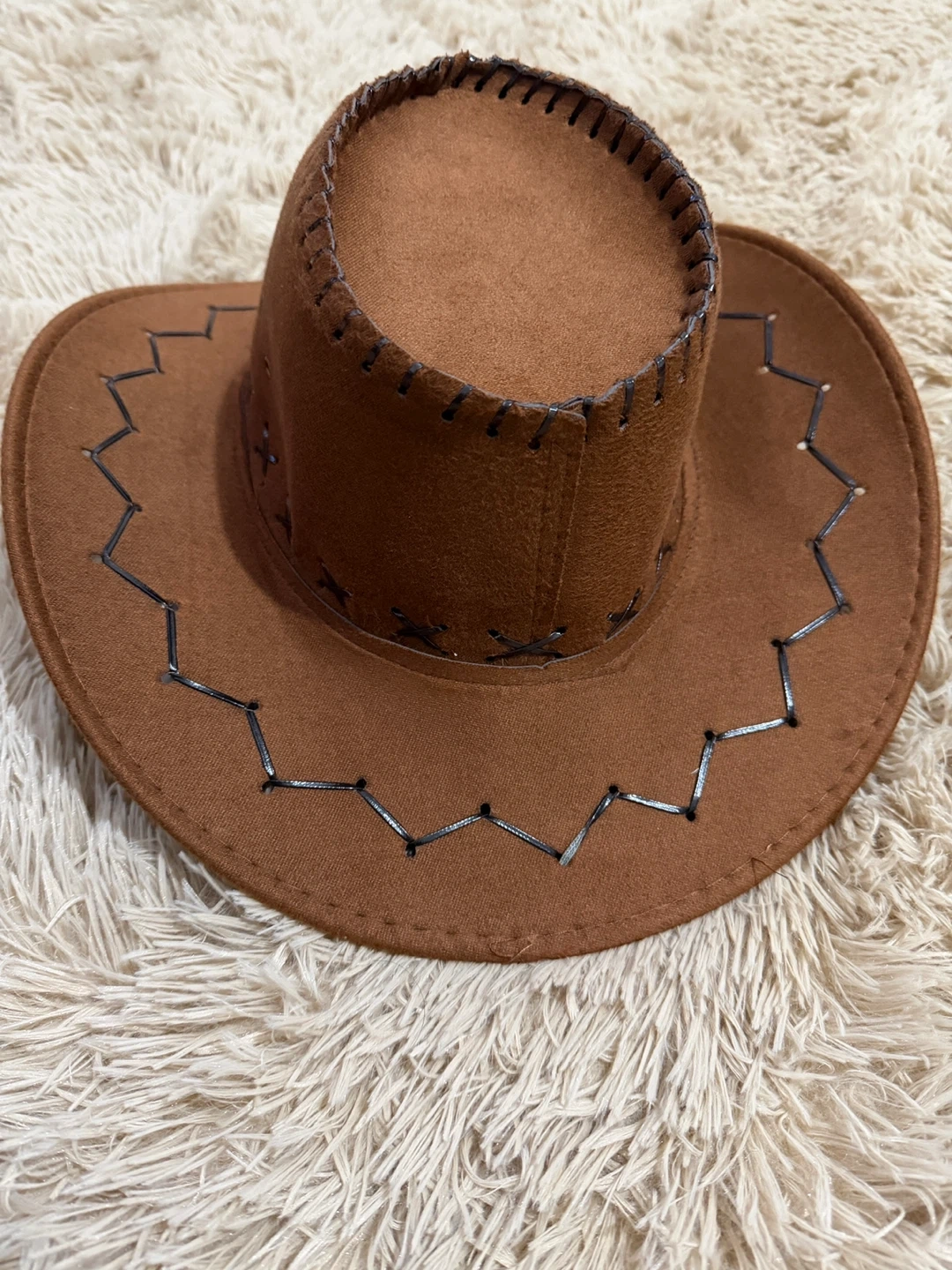 Brown Suede Cowboy Hat with Stitching