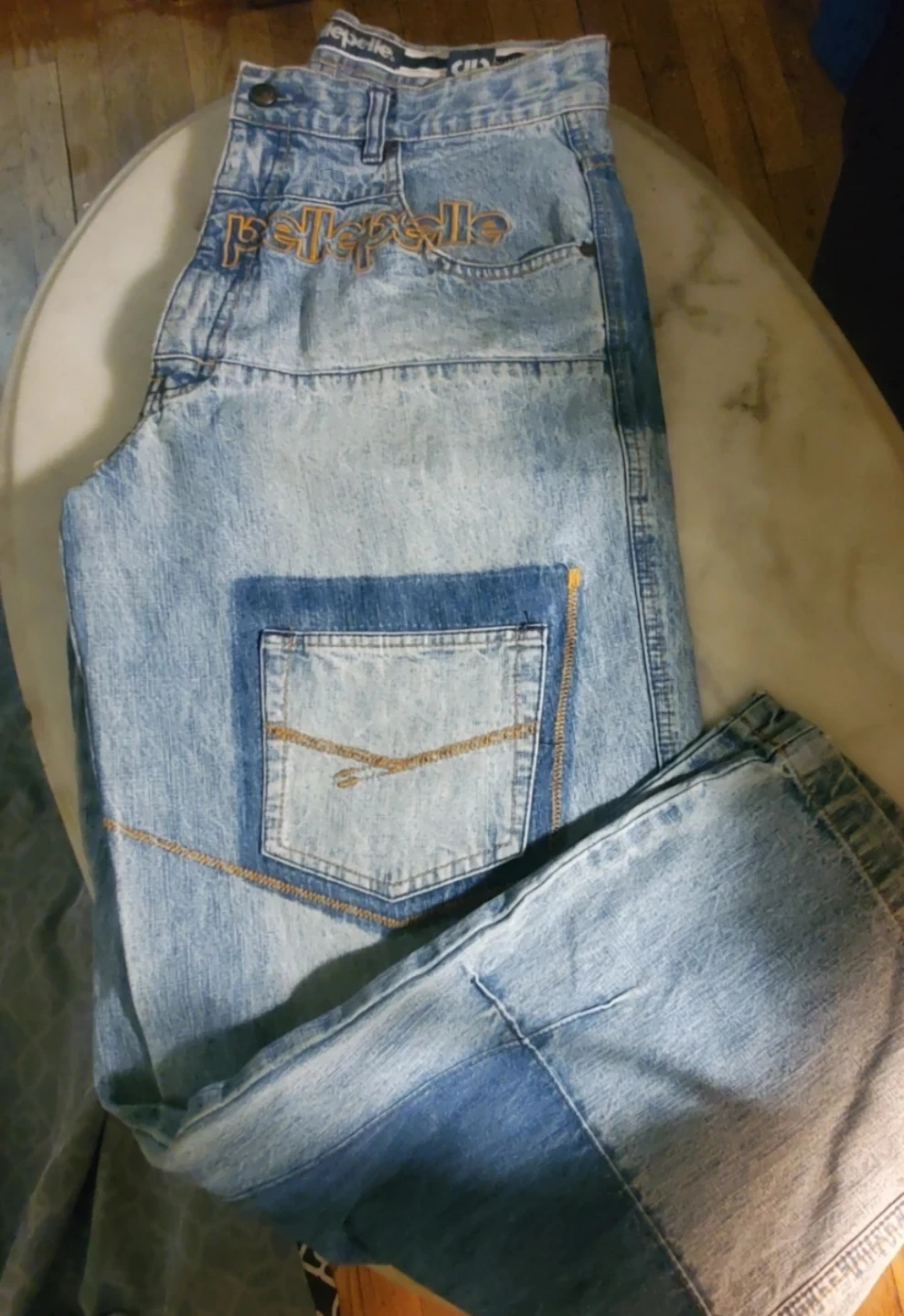 Buy & SellPelle Pelle JeansPelle Pelle Jeans$39These are Pelle Pelle jeans. They're made of denim. This item includes original branding.ConditionGoodSizesize 32 inseam 34BrandPelle PelleWHERE TO MEETCheck LocationView MapSELLERverified396235Manhattan Valley650 reviews0 chats·0 favorites·16 viewsSEND CHAT TO SELLERHi 396235! I’m interested in your listing.Hi 396235! I’m interested in your listing.Get the Karrot app to chatSign In to chat