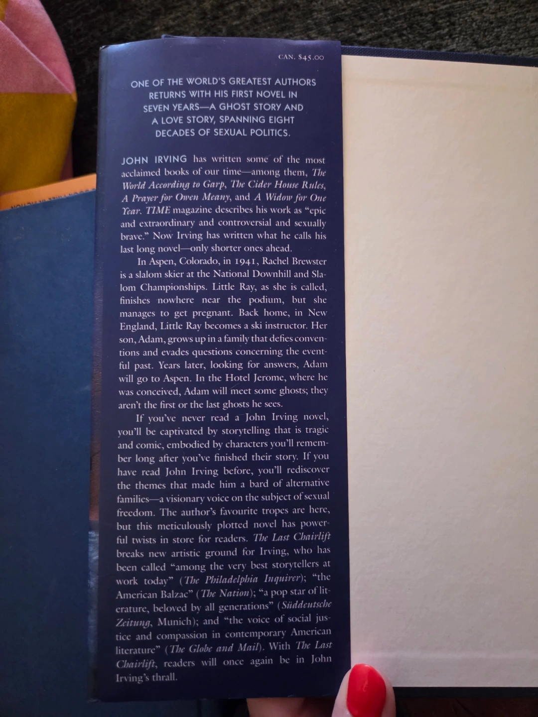 Selling a copy of "The Last Chairlift" by John Irving! It's a captivating novel that spans eight decades of family secrets and political themes. A compelling read for anyone who enjoys thought-provoking stories