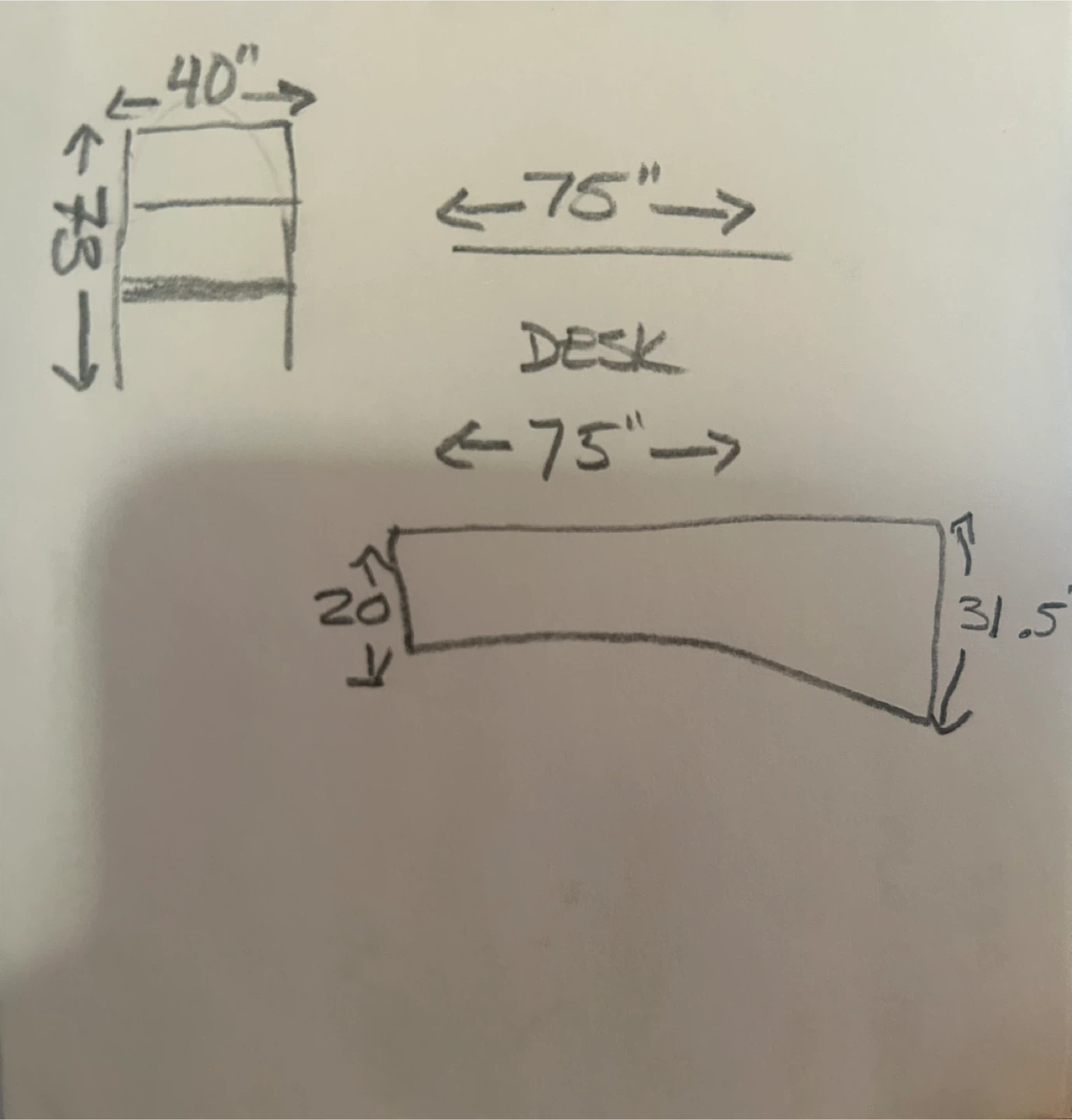 This twin loft bed includes a built-in desk. The desk measures 75 inches long by approximately 20-31.5 inches wide.
