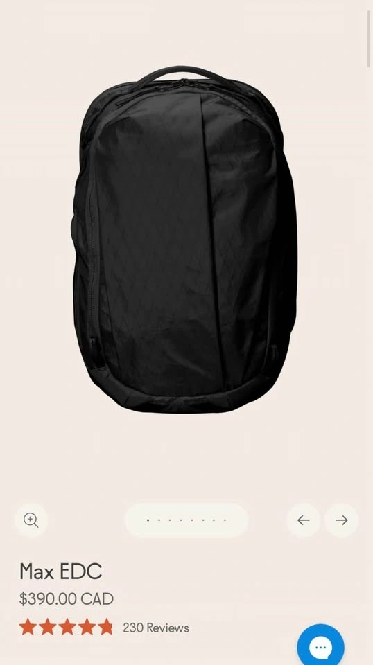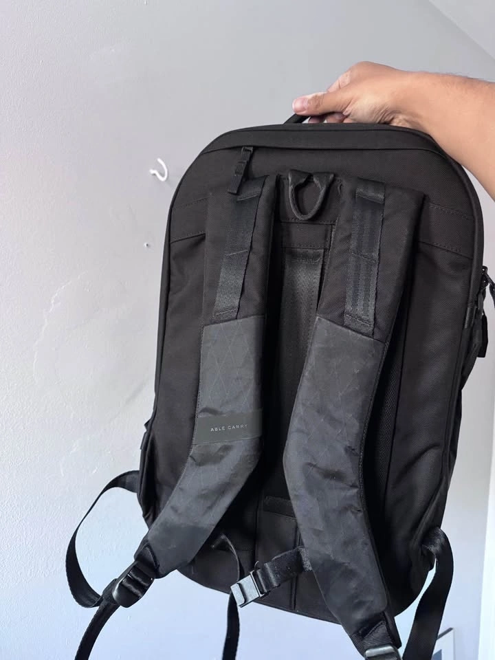 Used only twice, this black Able Carry MAX backpack is in perfect condition with no issues. It's a 32-liter capacity bag with plenty of pockets. It fits laptops up to 17 inches.