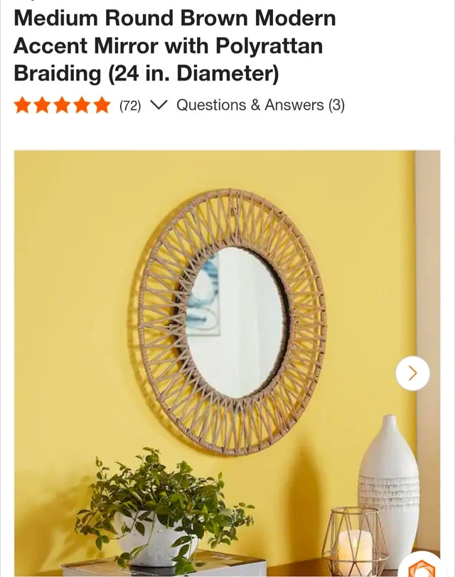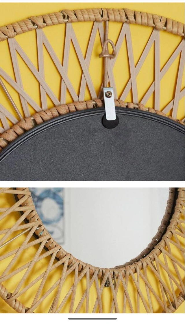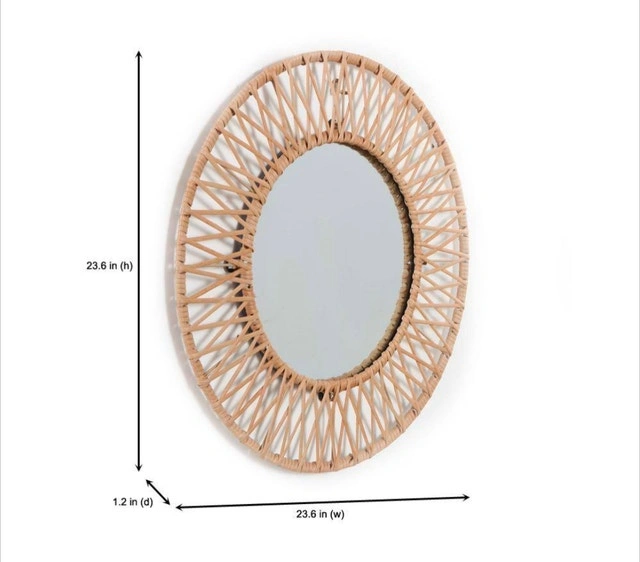 Brand new, still sealed in the original packaging. Add a touch of bohemian elegance to your home with this medium round accent mirror, featuring stylish polyrattan braiding around a 24-inch diameter. Its modern brown hue complements any decor, making it a versatile addition to your living room, bedroom, or entryway. If the ad is still up, it's still available!