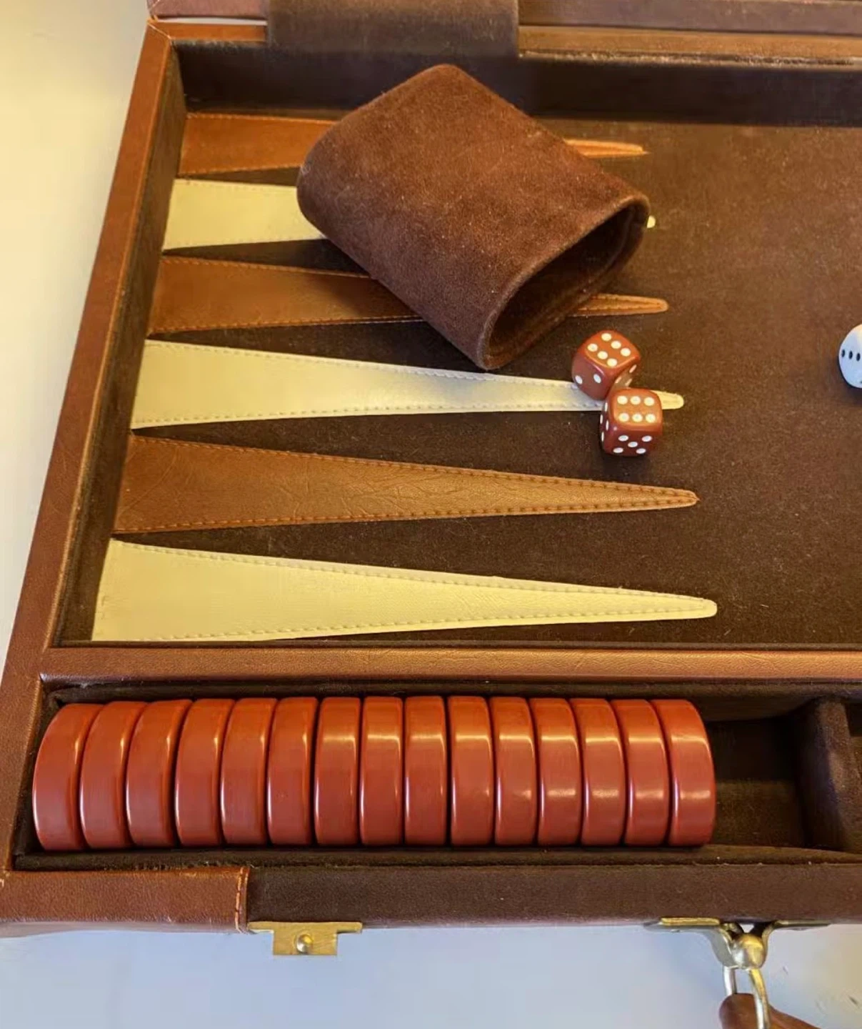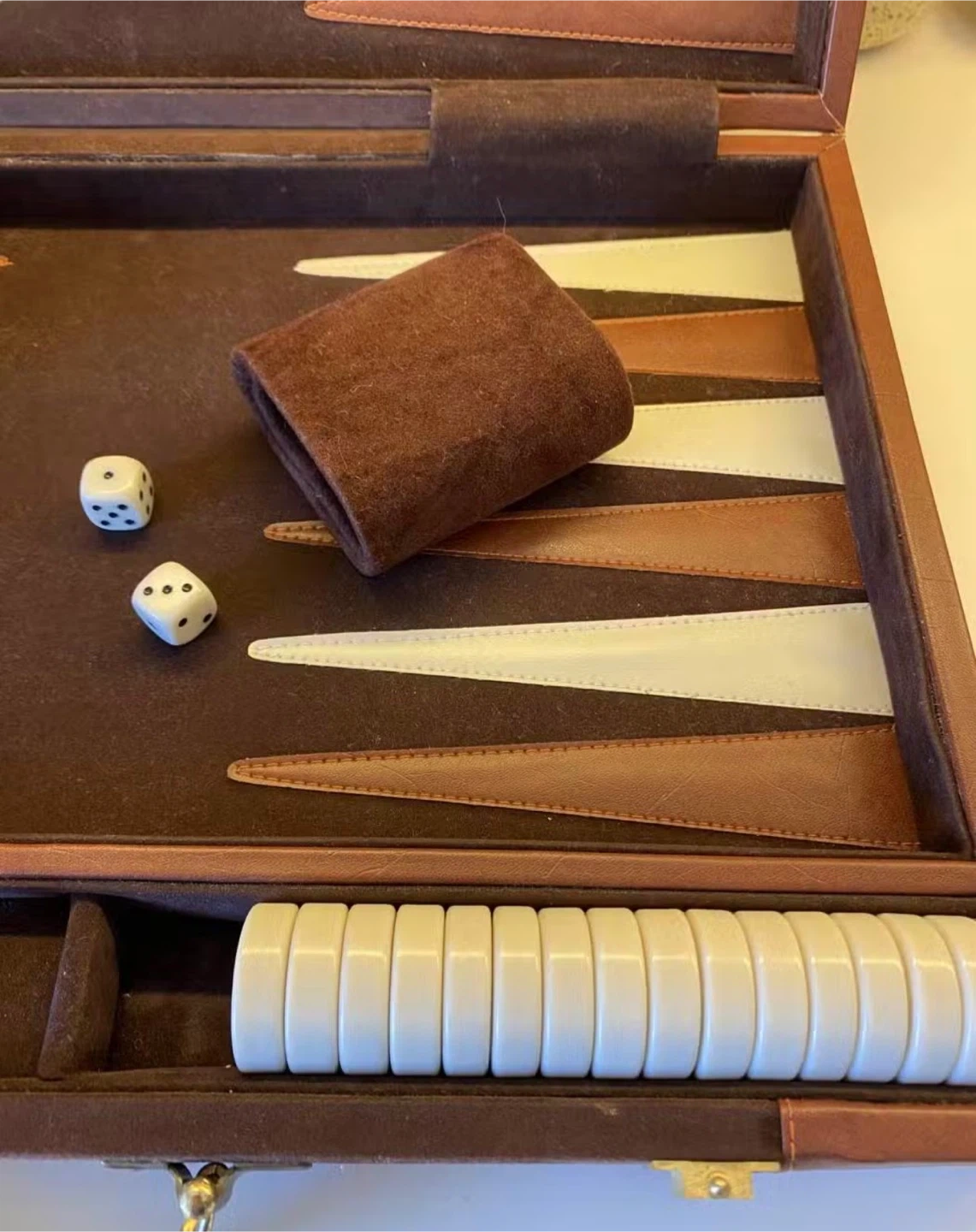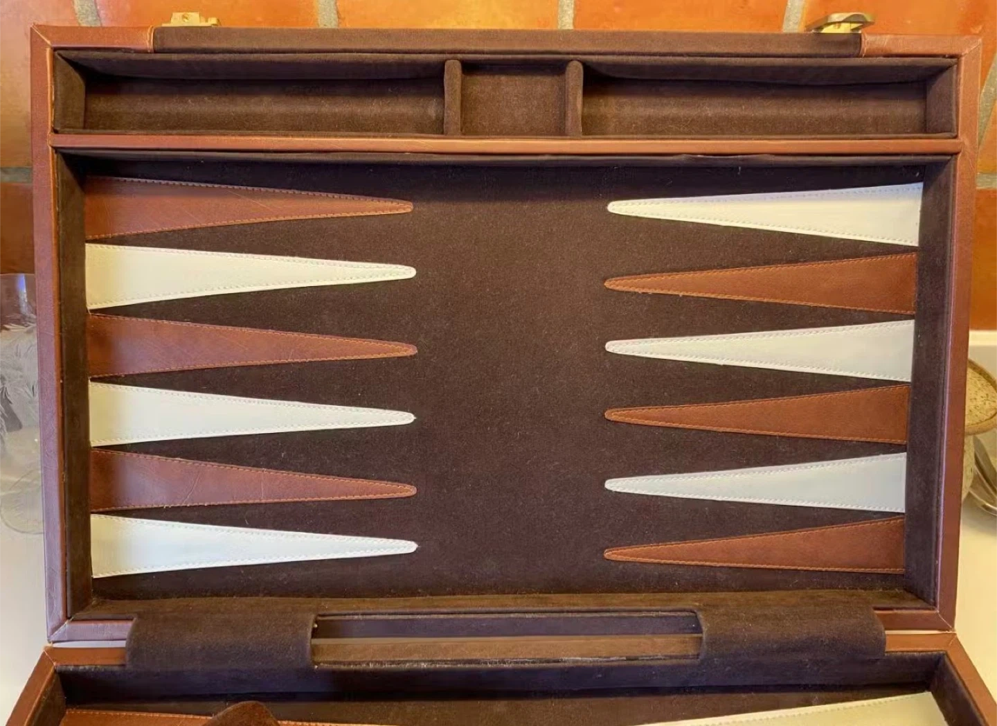 Brown Suede and Leather Backgammon Set