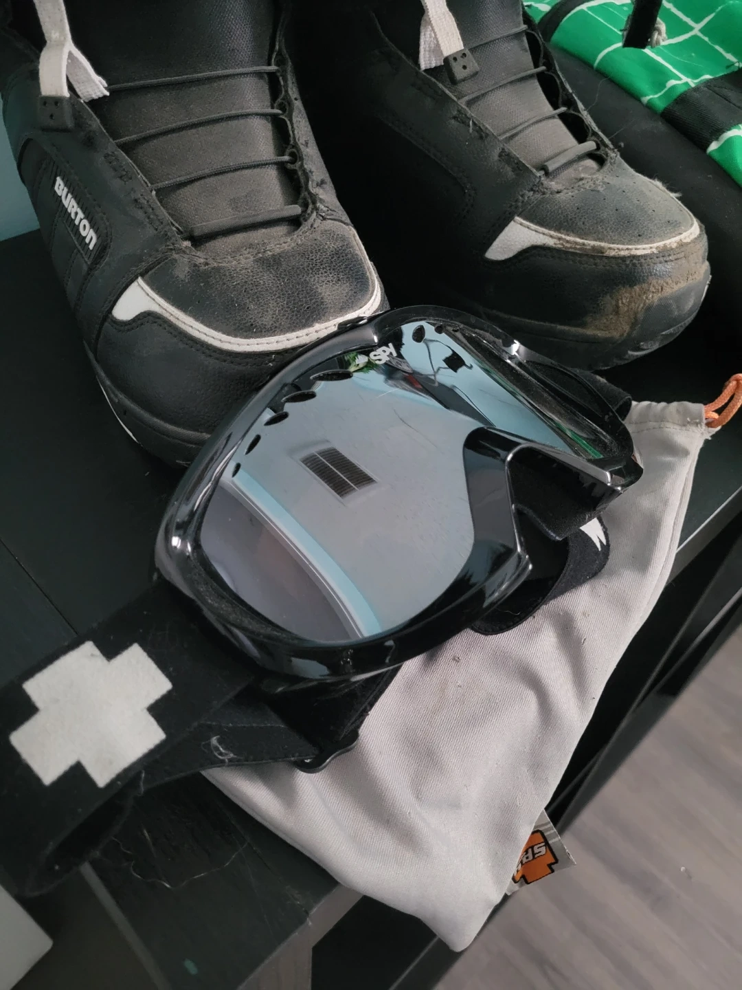 Burton Snowboard Boots, Spy Goggles, Snowboard Bag