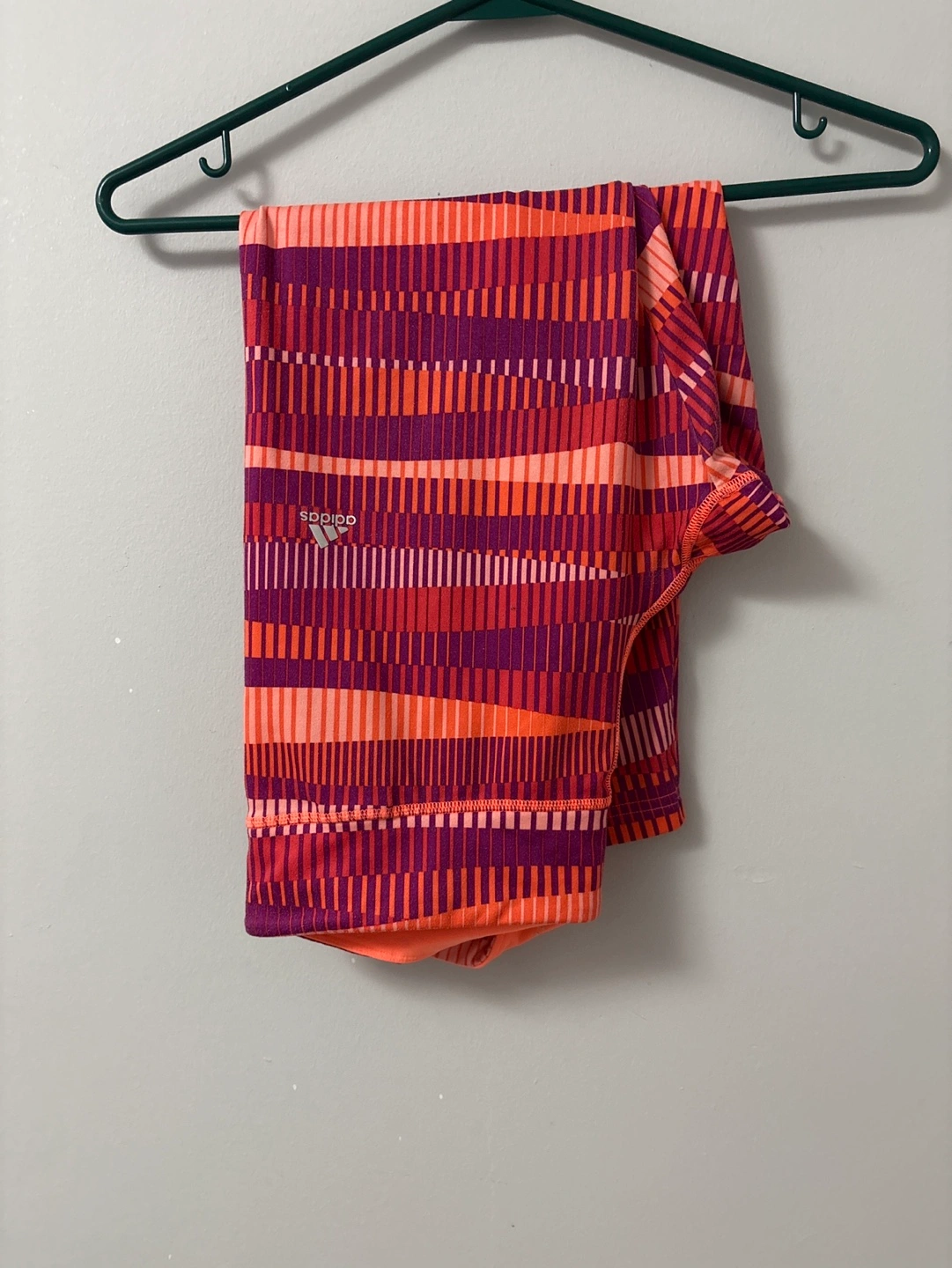 Women's Adidas leggings. Size medium. Orange and purple geometric pattern. Excellent condition.