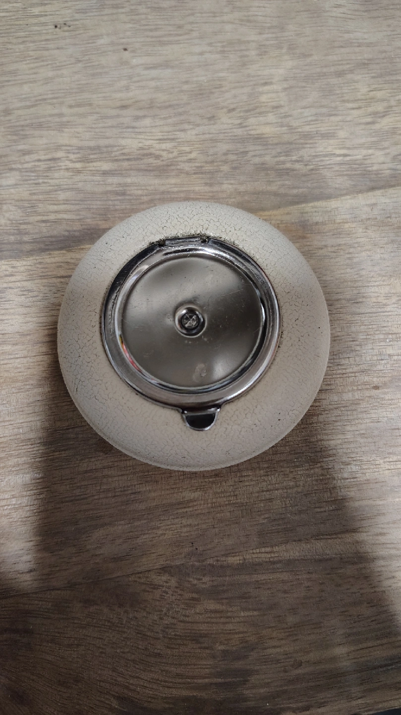 Selling a vintage round ashtray. It has a unique design with a lid. It's in good condition for its age!