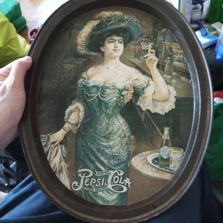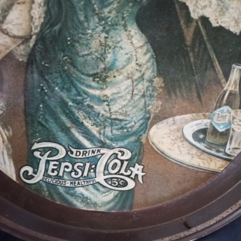 This is a vintage Pepsi-Cola advertising tray featuring an old-fashioned woman.